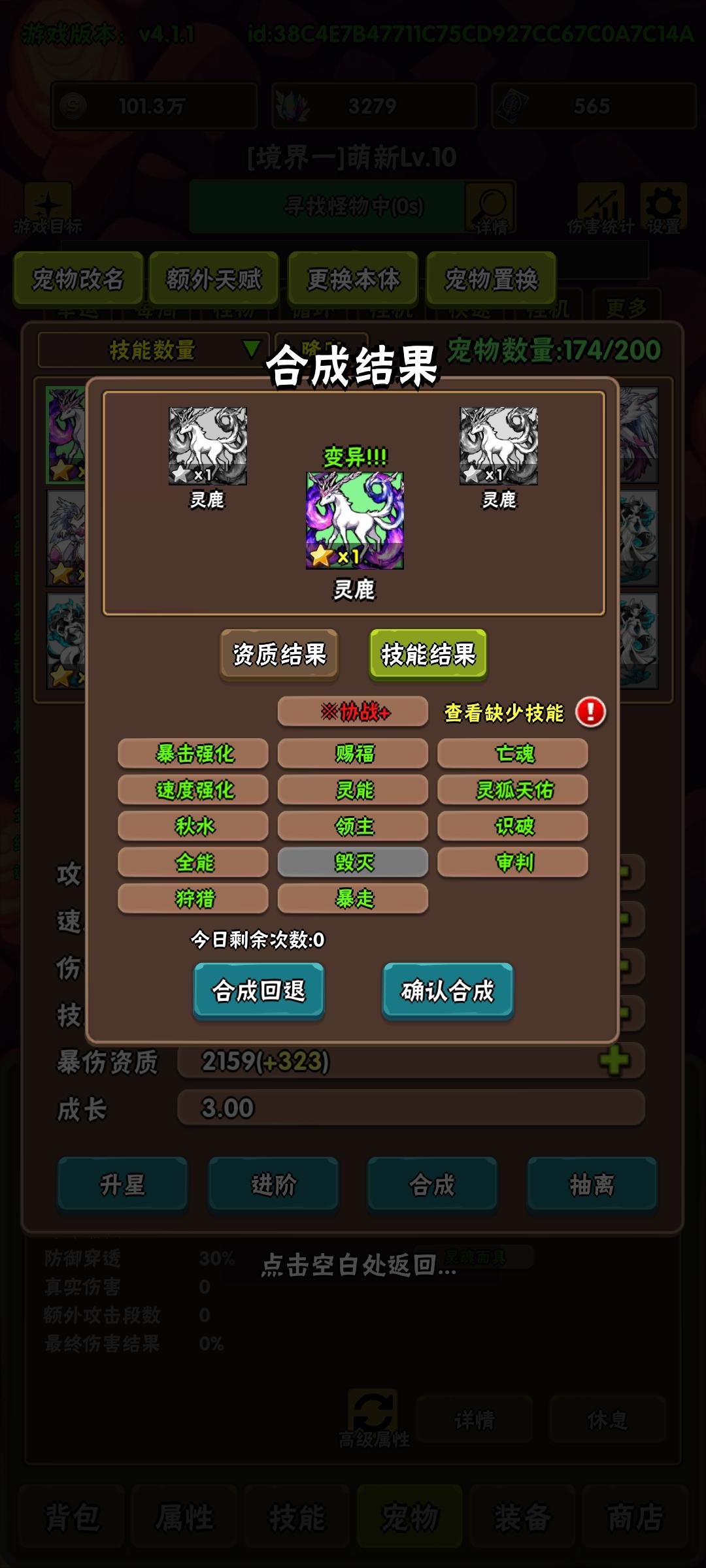 补充说明:我上传了两张图,一个是我的速刷记录,玩过的都知道,多少有点实力了(不放“不可能”难度是因为后来没重新刷过不符合水平),另一个是我提到的自动合成功能对应的神器,入手不难,稍微手动培养一下宠物有个基础之后就可以拿到,然后重复工作就彻底结束,一切交给挂机时间!