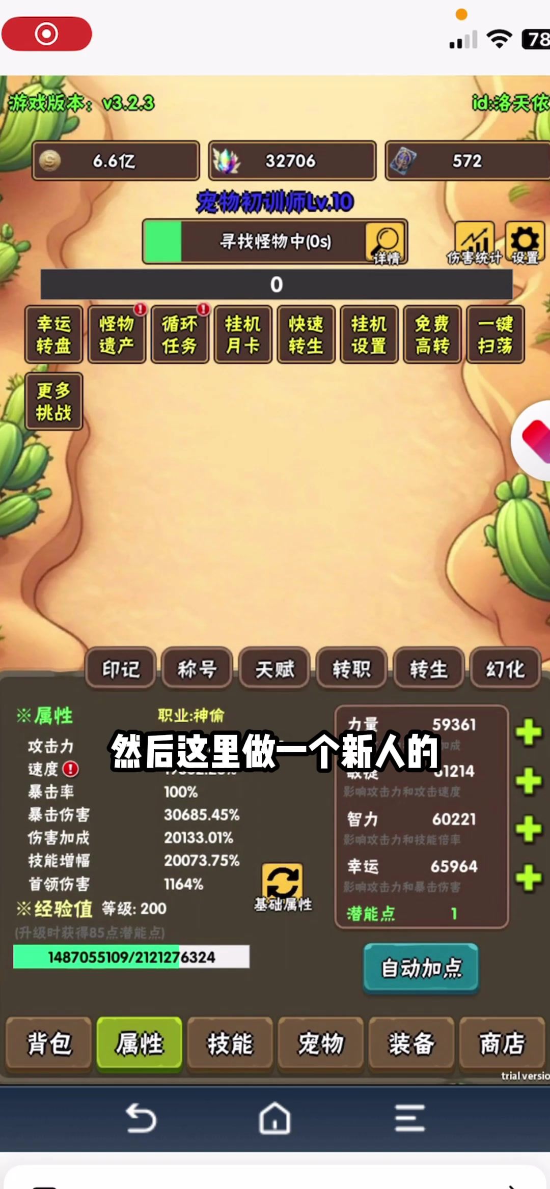 本视频仅为演示,可以不砖石用神奇盒子,给萌新基础合成演示,核心技能掉落就后悔鱼汤,资质3000和成长很简单,还没神器的玩家就先不要管自动合成了,随便召一些宠物有用#放置挂机 #游戏安利 #破日开天 #
