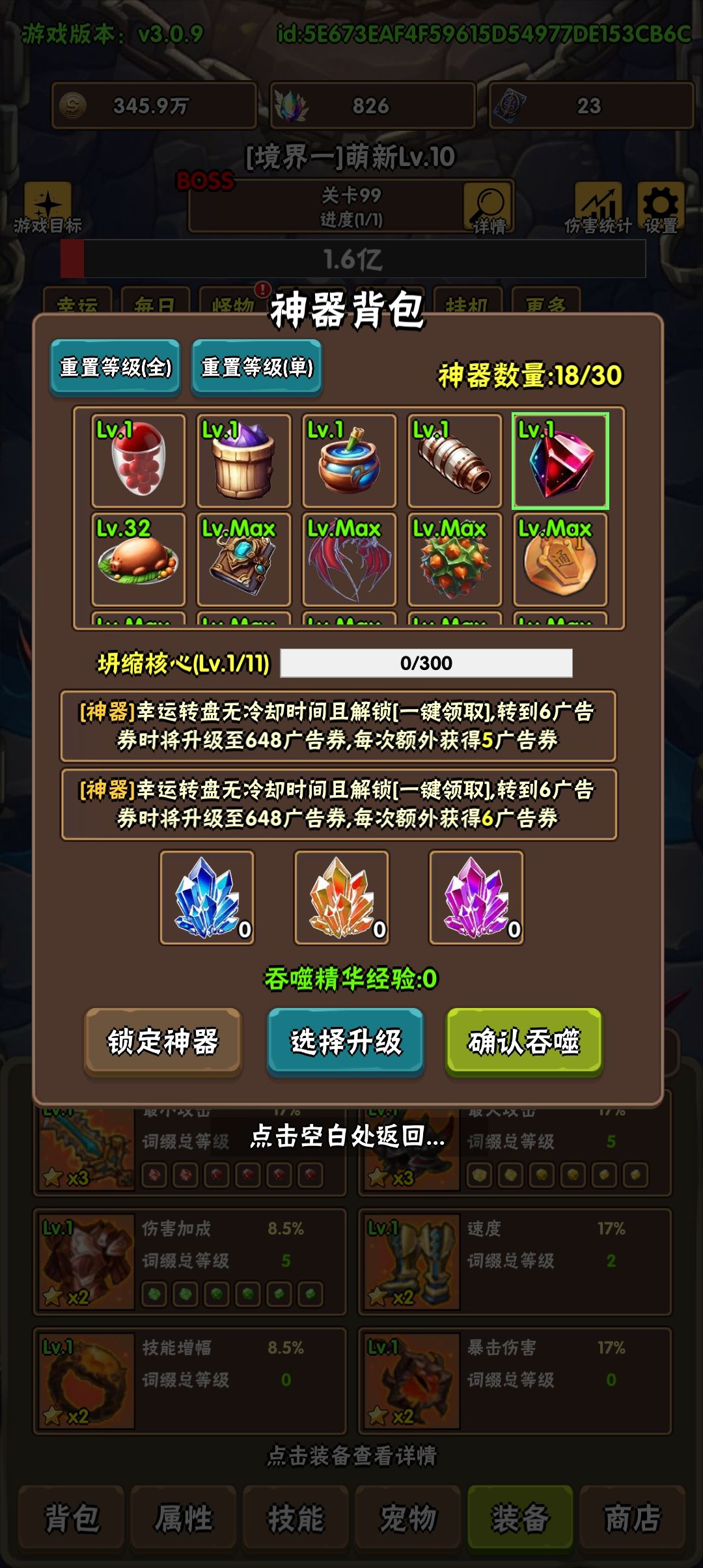 前提:拥有游戏目标转生一千次记录的神器 秘制丹药(减少自动转生时30%的等级丹消耗),通用天赋60级开局拥有金币等级,自动转生打开自动购买金币选项,解锁境2且境2普通常态能打到极限记录,升级增加普通牌子获取的神器 3.3.4版本前理论:转生一轮增加4牌子也就是4*5 20个等级丹 一轮升75级消耗21个等级丹 21-20 消耗1等级丹 靠开遗产弥补并增加这部分等级丹 3.3.4版本理论:与前理论一