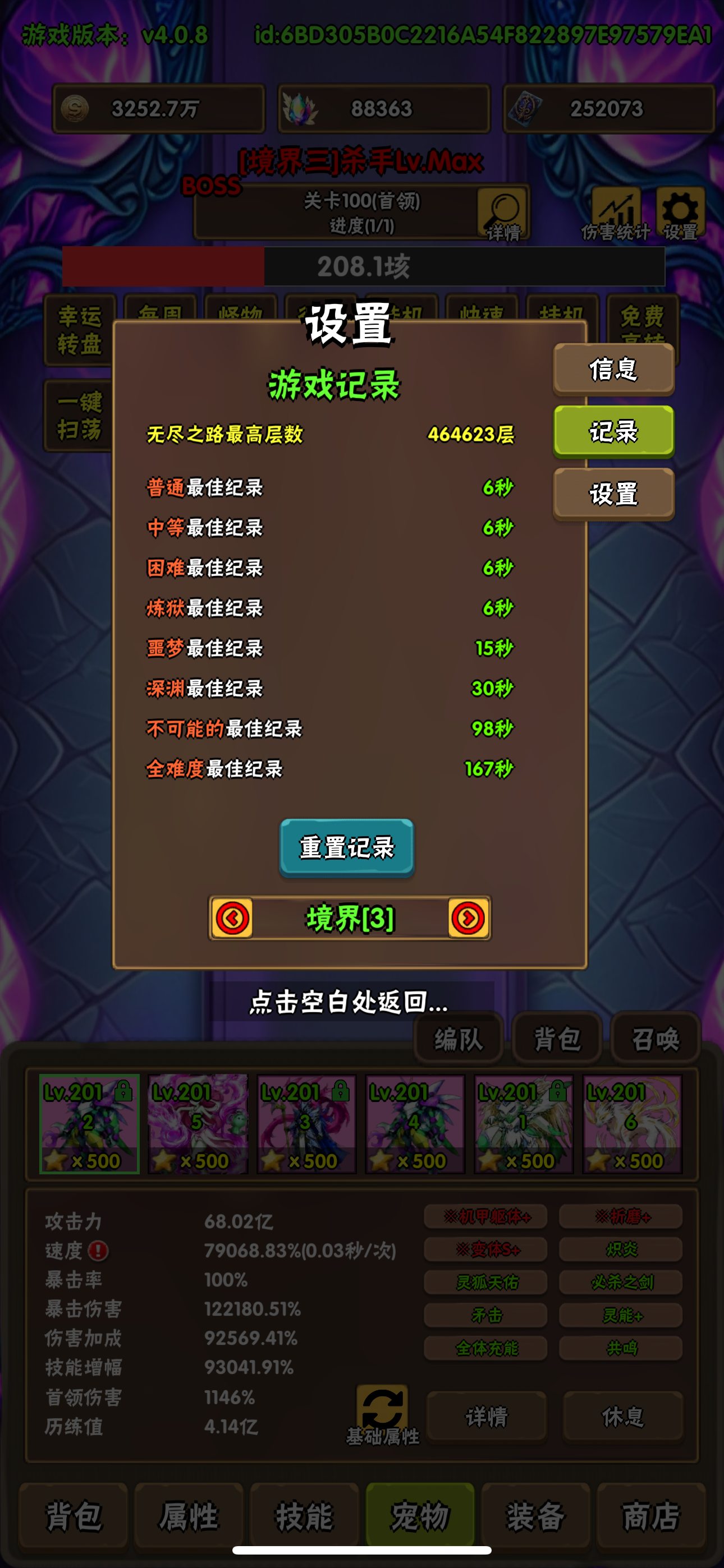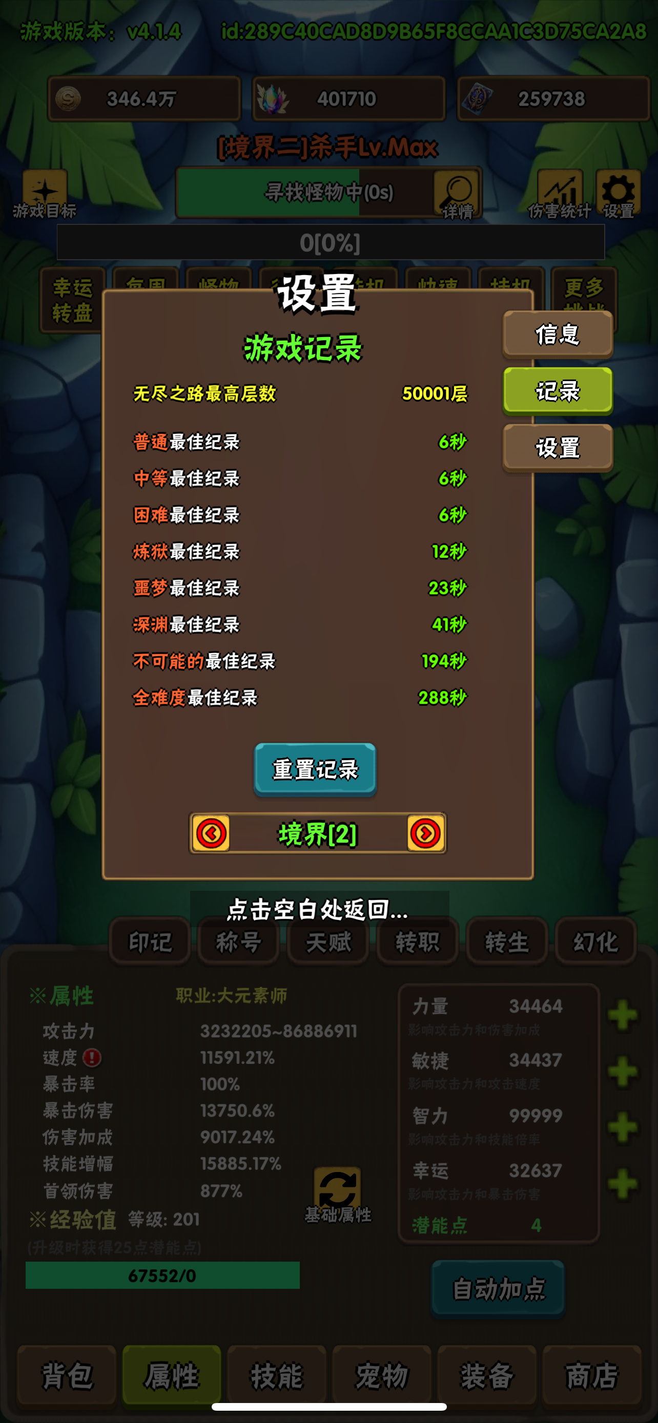本篇攻略仅提供步骤不详写原因,对步骤有疑问可在群里提问(我在13A群,同名灵枫)本文分两种情况①一路跟着我的系列攻略走到这,第8,9天即可第一次冲层5k拿一花的果实,也是提升神器经验获取②规划不多没跟我的攻略走资源不多的,那就13天左右冲层到1w5左右层数。本次只说第二种(因为我弯路走太多了不能回头走第一种啊铁咩!)条件:①装备除武器全部200星以上②个人建议弓手称号绿色满级,会高一点层数