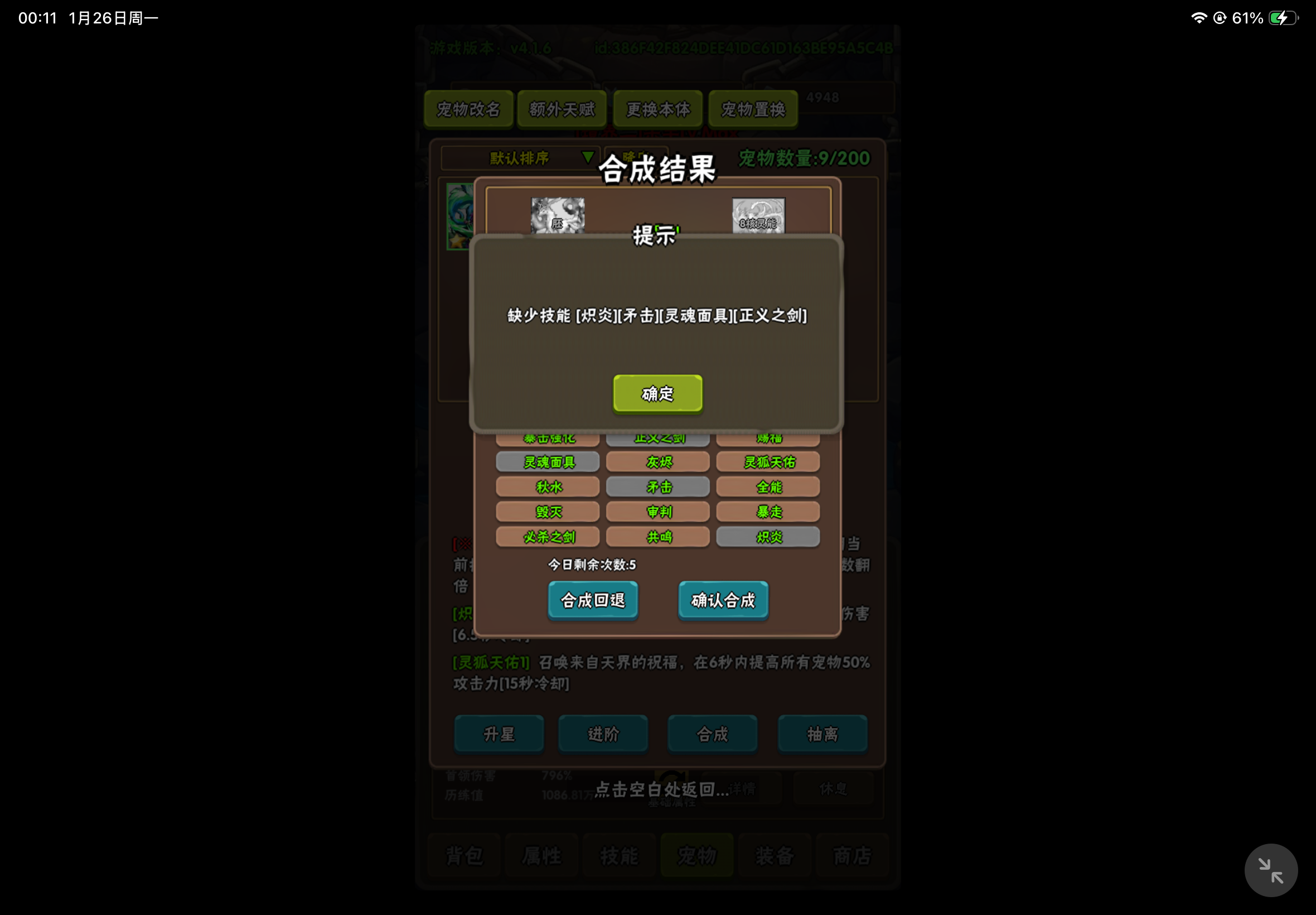 真实崩溃了好不容易自动合成九核22技能,结果成长只有2.75