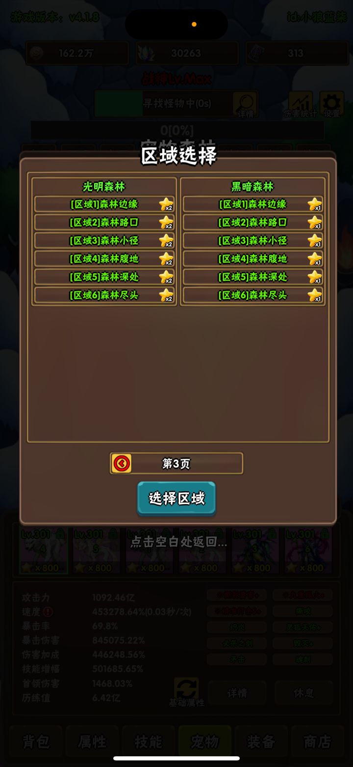 比较极限的配置,昨晚凹了半小时,2次跳99关,1次102秒,1次99秒。我宠物比较差,比我配置还低的只能赌更多毁灭和跳关,或者继续搞5进阶。 配置简单说下: 1、人物基本没啥用,四维够灵能满就行了,开局201级。 2、宠物主力:6s+,4满主力为双瓶变体、机天变体、魂ab、双狐神罚,技能都20~22,比较差;3个历练3.33亿左右,1个2.22亿;双狐也可以换机瓶变体试试。 3、印记:114万左右