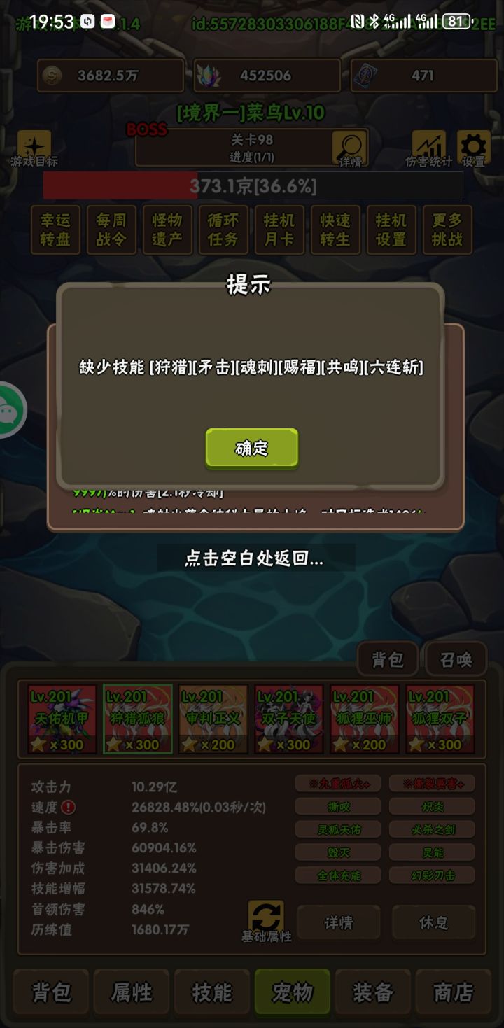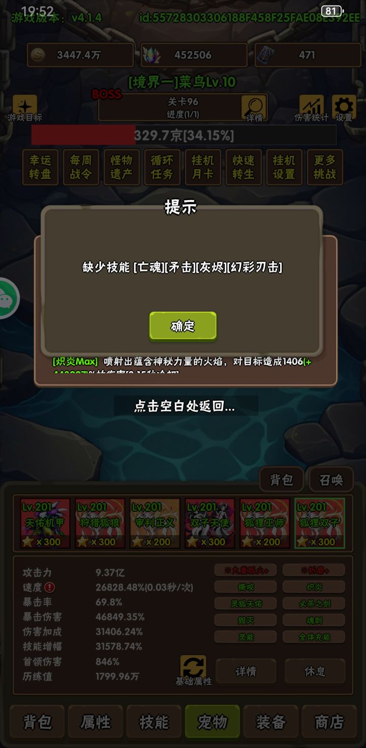 没有人物输出,纯宠物数值。这是我后发的图片,实际上机甲天使750星,宠物灵化100星,宠物天赋增强10级,宠物矿石增强10级,其余为:天佑10级,领主10级,狩猎10级就可以刷到。