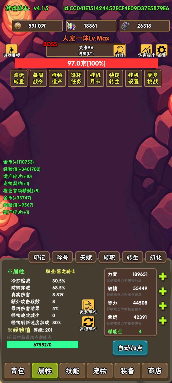大人们好,奉上无宠通关境二的纪念品~ 不可能通关75s,破关配置是:定制词缀 + 境二称号橙色满 + 星辰满技能 + 三花(洞察/风暴/机敏) + 装备星级头/衣/项/戒300 + 装备锻造头200项戒170衣125 + 神器粉末满 + 天赋满 + 四维满。具体的也可以看视频,都打开过了一遍~ 整个过程耗时41天,不过天数不可作参考,因为:1)氪了锦鲤;2)元旦活动拿了非常多红丹和离线高转;3)刷