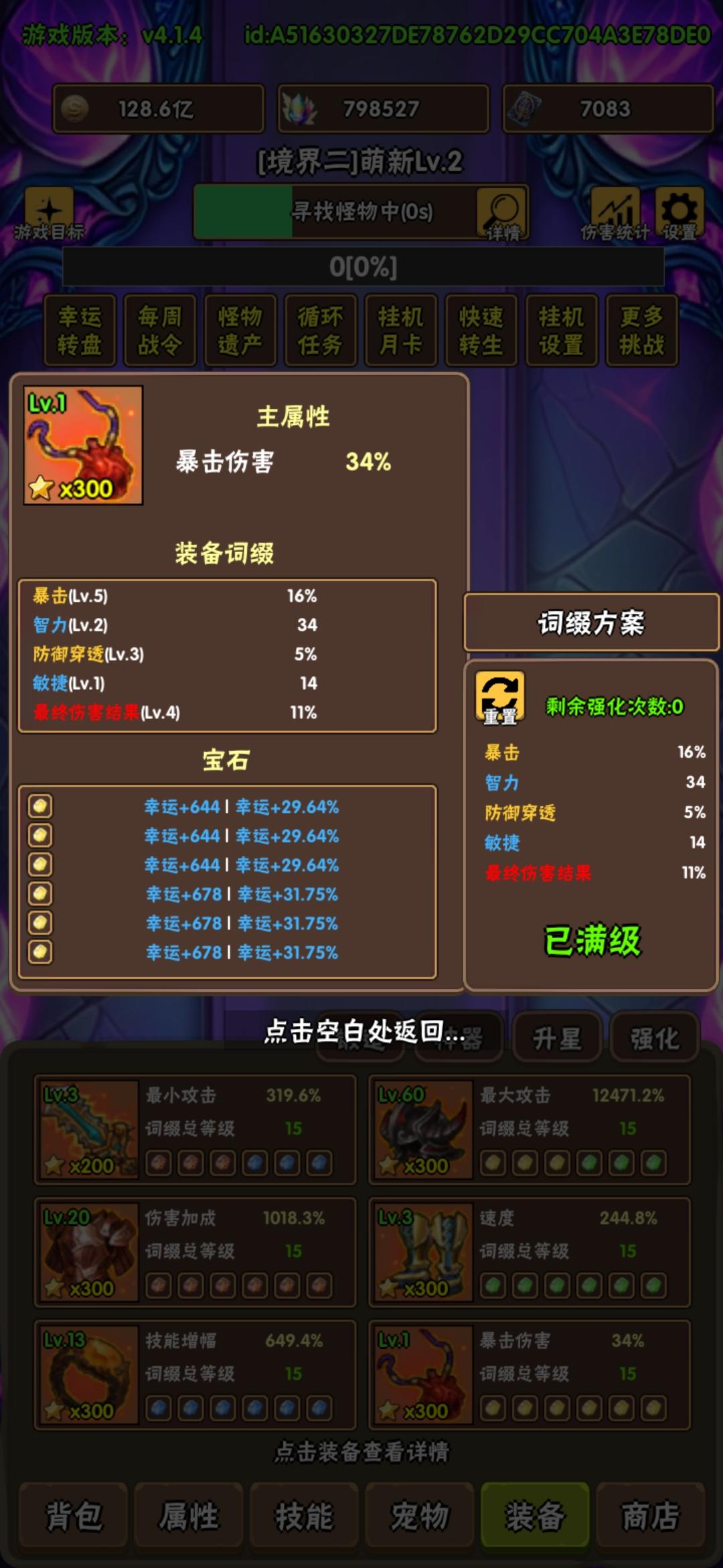 神器 天赋 印记全满。境二的称号max,战士称号宗师级。三花技能,光之弓,洞察 黑暗元素,等等推荐的全用过 都不行。 暴击82.5% 穿透68.5% 最终伤4%。 难道是装备词缀问题吗?