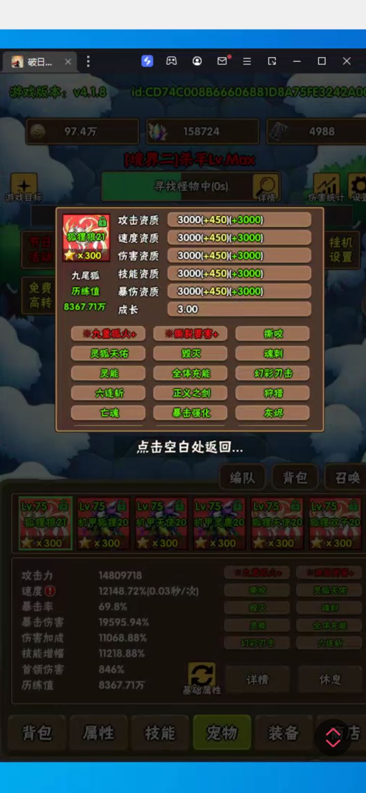 #游戏攻略 前因:之前走了很多弯路,加上宠物缺了部分技能所以想着单单靠人物通过境界二。具体可以看下论坛里有位大佬的无宠通关攻略,我的就是根据大佬的视频来调整自己的通关方式。磨了很久,时间从几千秒到几百秒再到62秒今天终于通关了。1.人物(星辰)➕宠物(三满 核心技能能有就有)➕定制词缀➕红称号➕装备300星➕神器(该升满级的都满级)➕星辰部分技能满级➕吃潜能果子2.看了论坛的很多攻略还有请教了