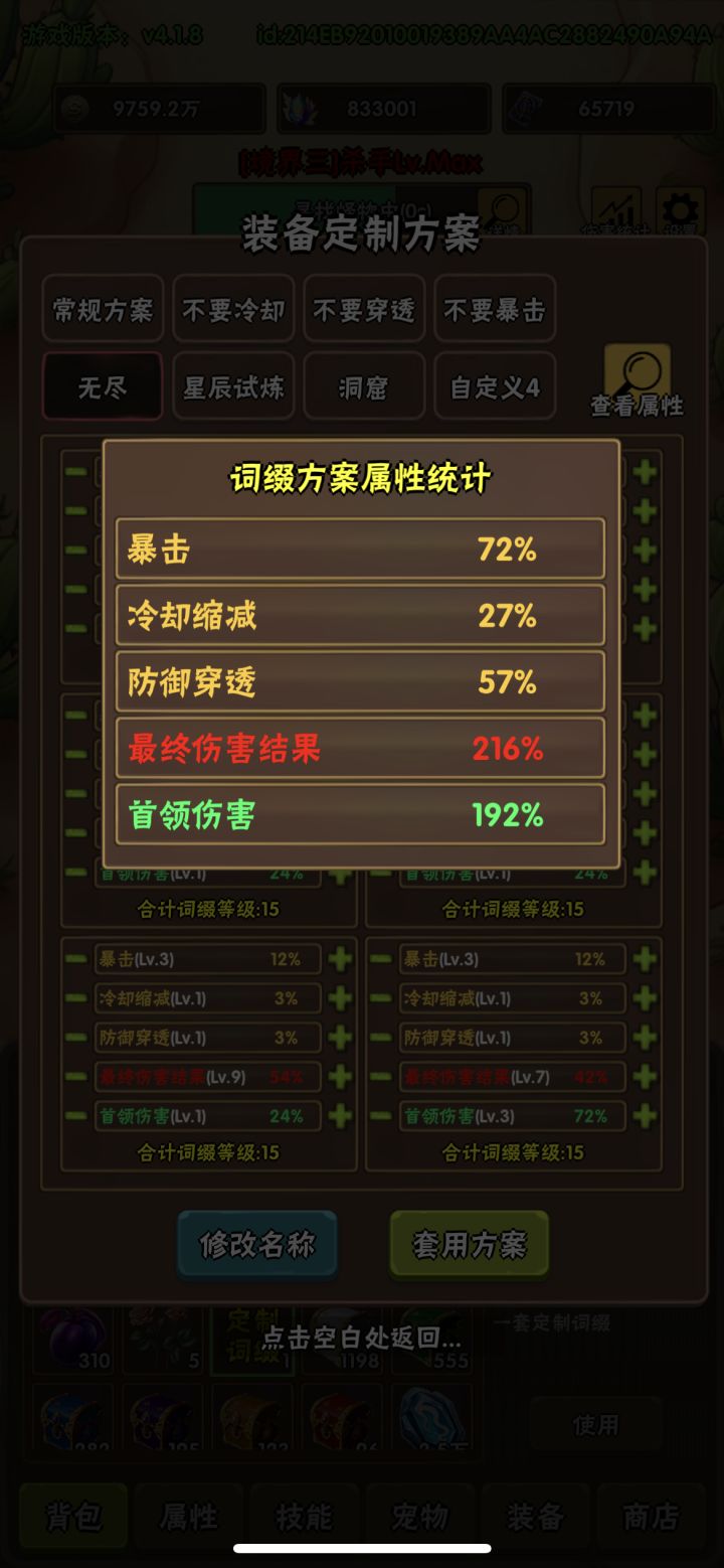 境三不可能100s配置参考(无定制词缀、无定制宠物)