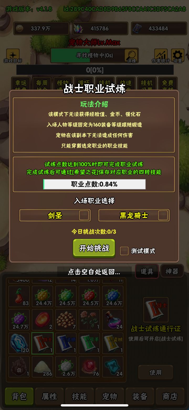 day5:思来想去还是先突破境二啦。幻化18级(0.3s),神射吃了3w潜能果(一次只能吃1000)。大概是如图的面板,花了93s破关。其实现在进境二也没有事情可以做,只能是领下战令(顺便刷新点便宜增幅药水)。这周也无望续杯~
