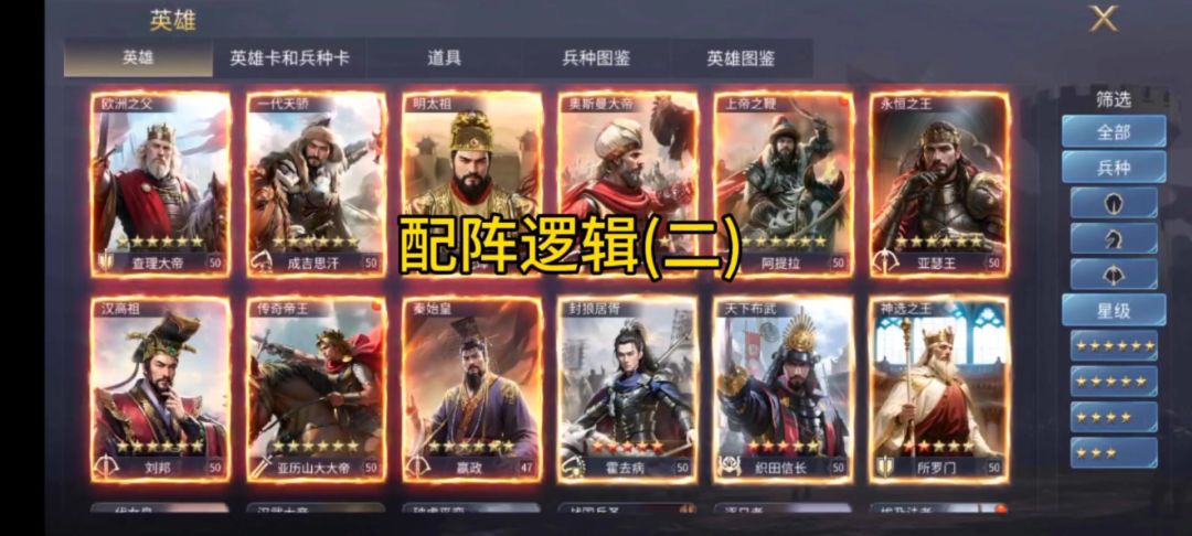 写到这里,这个系列的攻略算是进入第一部分的收尾,第一部分主要为大家介绍剖析六星英雄中的弓兵和盾兵,因为游戏内的阵型多,而对于新手来说初期最好理解和上手的基本上是弓步阵容,所以按照这个逻辑顺序为大家介绍相应的弓兵和盾兵六星英雄,但是在六星英雄中,有一个是非常特殊的,既属于弓兵,又属于步兵(枪兵),今天的这篇攻略我们只剖析这一位英雄,然后把五位已经推荐的六星英雄如何配阵为大家奉上。 一、汉高祖-刘邦