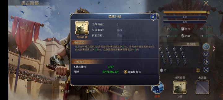 昨天下午4点,1-2服准时进入了文明1阶段,在大家都忙于开荒抽将的时候,不经意之间,发现了英雄技能看着不太对劲,然后翻出测试期曾经发布过的英雄技能截图,竟然排查出了三个六星英雄的技能,产生了变化。一、奥古斯都 本次统计英雄技能变化,出现在文明1新出的三位六星英雄身上,奥古斯都是第一位,我们通过对比新老技能,剖析变化和影响:奥古斯都老技能:我方全体步兵的前3次造成远程伤害提高15(+1.5)%