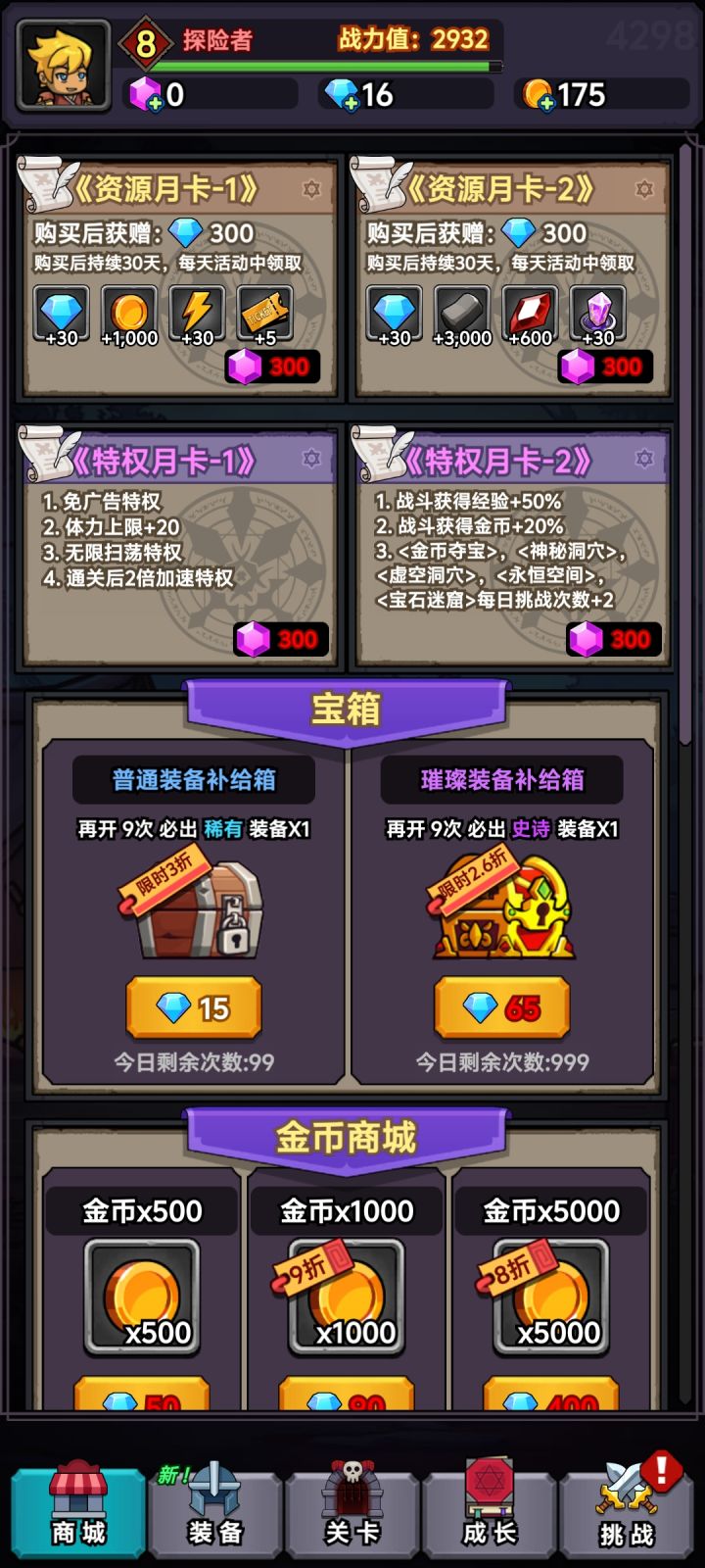 稀烂,双卡资源吃屎,刷又不像刷,培养系统就是装备一路弄,哦更新顺便也把培训的强化石那些也顺手砍了获取