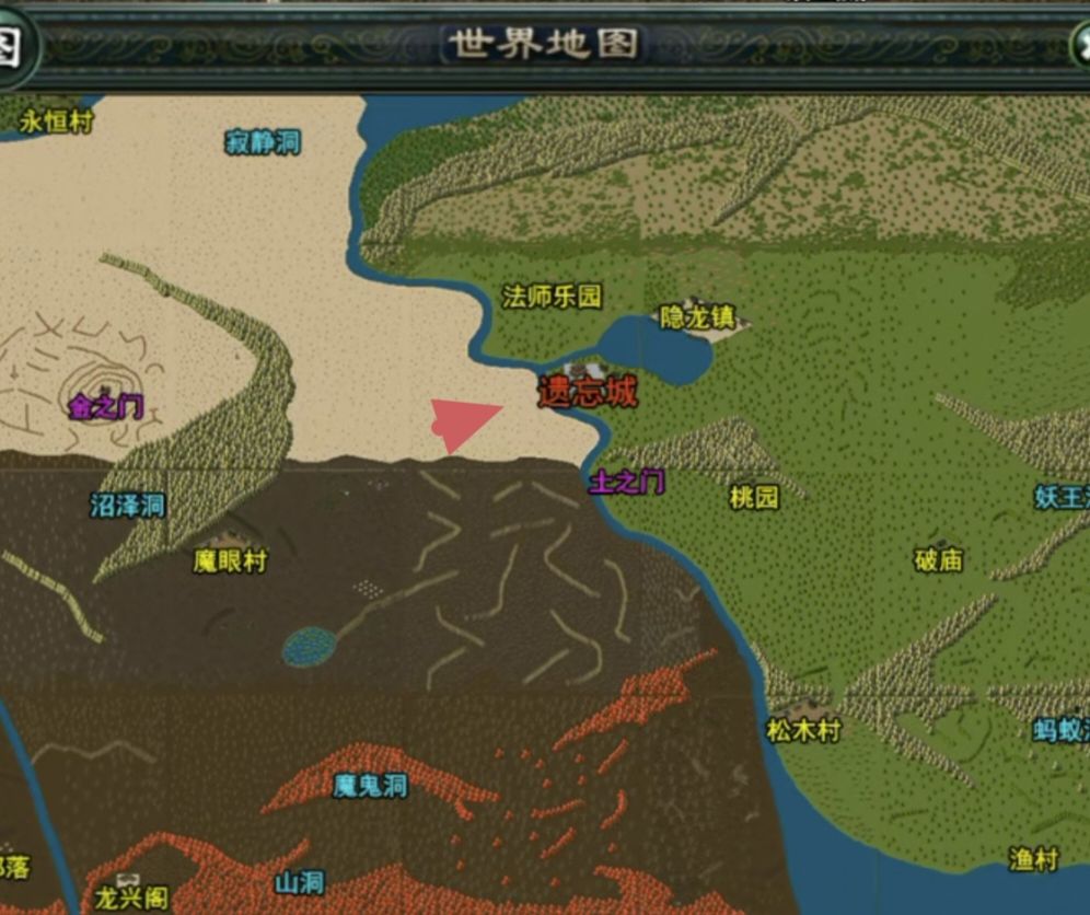 本攻略得有点基础的新手才能看懂,不啰嗦直接进去正题! 前面说过新手村攻略,出了新手村,去永恒森林打点装备后,直接沙漠最后一个图,看图红色位置,为啥挂这个图,因为这里除了武器,爆所有永恒装备,关键的关键这里给吸血戒指 在沙漠挂机装备差不多了,主要是挂到吸血戒指,当然土豪也可以买,太贵别要,这玩意后期送人都没人要 身上一套永恒(两个吸血戒指,大佬有复活就不用吸血戒指),运九后,直奔魔鬼洞,如图二(升级