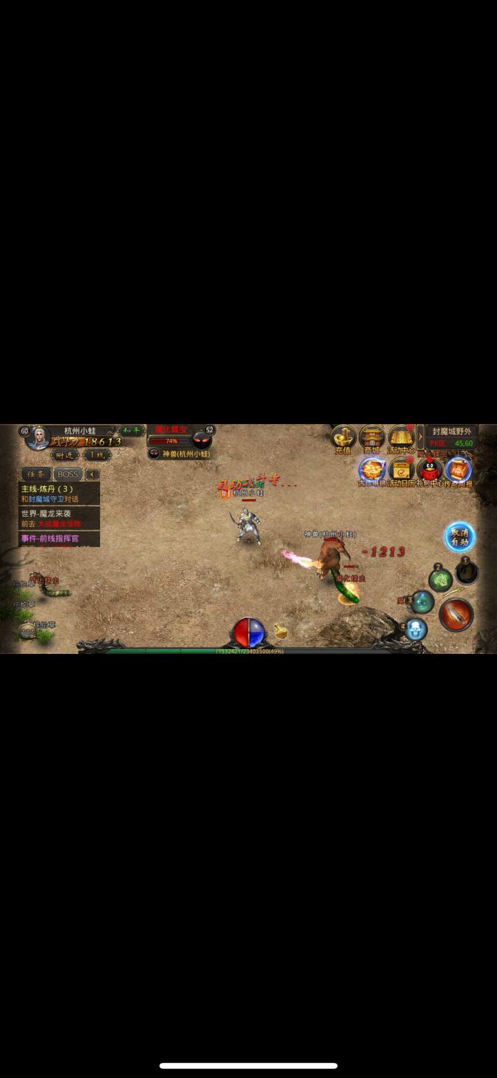 推荐挂机地图A2推荐理由地图小有BOSS玄武 且比较容易找到C2的永恒村可以是去很多地方得捷径 法师可以用瞬移飞到沙漠,往右可直达牛魔洞D5的比奇省可出北门过图到法师乐园后用随机飞到左边的沙漠这里推荐挂机 产能很高 切遇得到BOSS牛魔王(黄泉教主)F5的松木也是个捷径可直飞左侧魔王地带 此图出地狱魔王 是最终BOSS之前的最后一只切地图不大野外遇几率大同理F4的凤凰也是,这