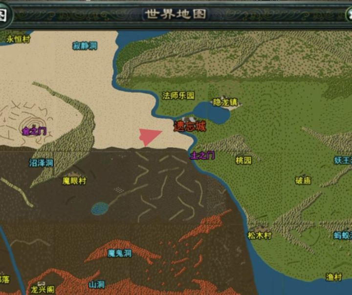 本攻略得有点基础的新手才能看懂,不啰嗦直接进去正题!前面说过新手村攻略,出了新手村,去永恒森林打点装备后,直接沙漠最后一个图,看图红色位置,为啥挂这个图,因为这里除了武器,爆所有永恒装备,关键的关键这里给吸血戒指在沙漠挂机装备差不多了,主要是挂到吸血戒指,当然土豪也可以买,太贵别要,这玩意后期送人都没人要身上一套永恒(两个吸血戒指,大佬有复活就不用吸血戒指),运九后,直奔魔鬼洞,如图二(升级