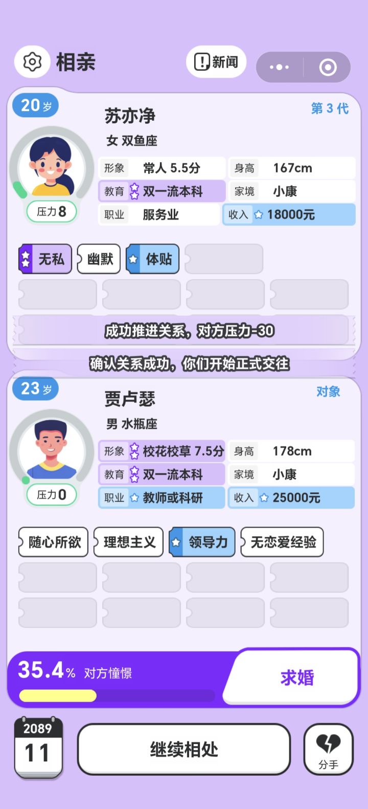 相亲相着相着种族都换了 游戏玩的少 第一次接触这类游戏