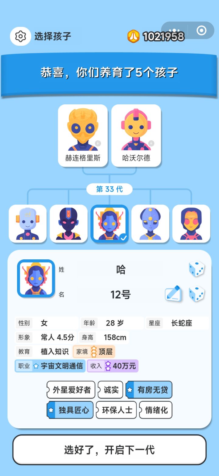⭐这是一个相亲市场模拟器⭐你可以定制你的角色,然后投入相亲市场⭐这里没有玩家与纸片人的甜甜恋爱,也没有普通人逆袭豪门的美梦⭐有的只是残酷的条件对比与议价,只是人与人之间的互相贴标签⭐随着时间的推进,世界背景也在悄然发生变化,可相亲,仍在继续……⭐直到某代你再也找不到对象,游戏就结束了⭐轻度肉鸽,无尽模式,你能延续到第几代呢?⭐点击右下角预约,静等公测,祝大家游戏愉快!#游戏种草计划