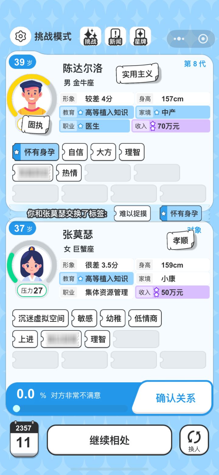 这些标签好离谱,因为新闻是。相亲开始就评价对方结果那么多标结果那么多标签粘在我身上出了个20标签成就这标签看着就好命苦#单机游戏 #纸上谈亲 #非酋的一天