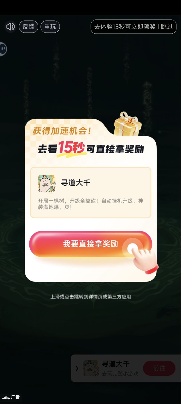 多数广告为强制跳转,且就算跳转了,显示领取了,关闭还是领取失败就算广告是计时的,右上角的领取成功不要信,看下面进度条,完全广告才给奖励。这广告做的👍