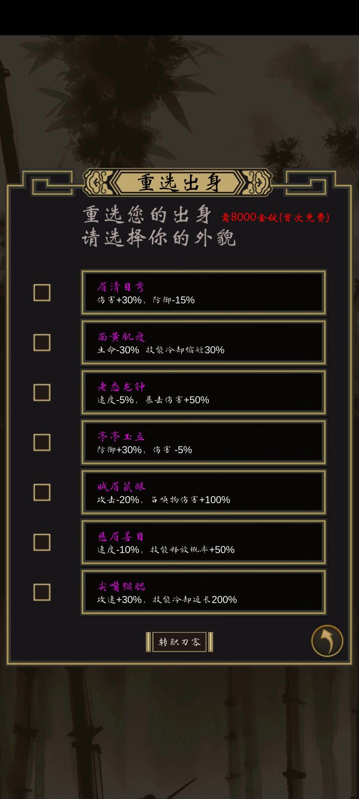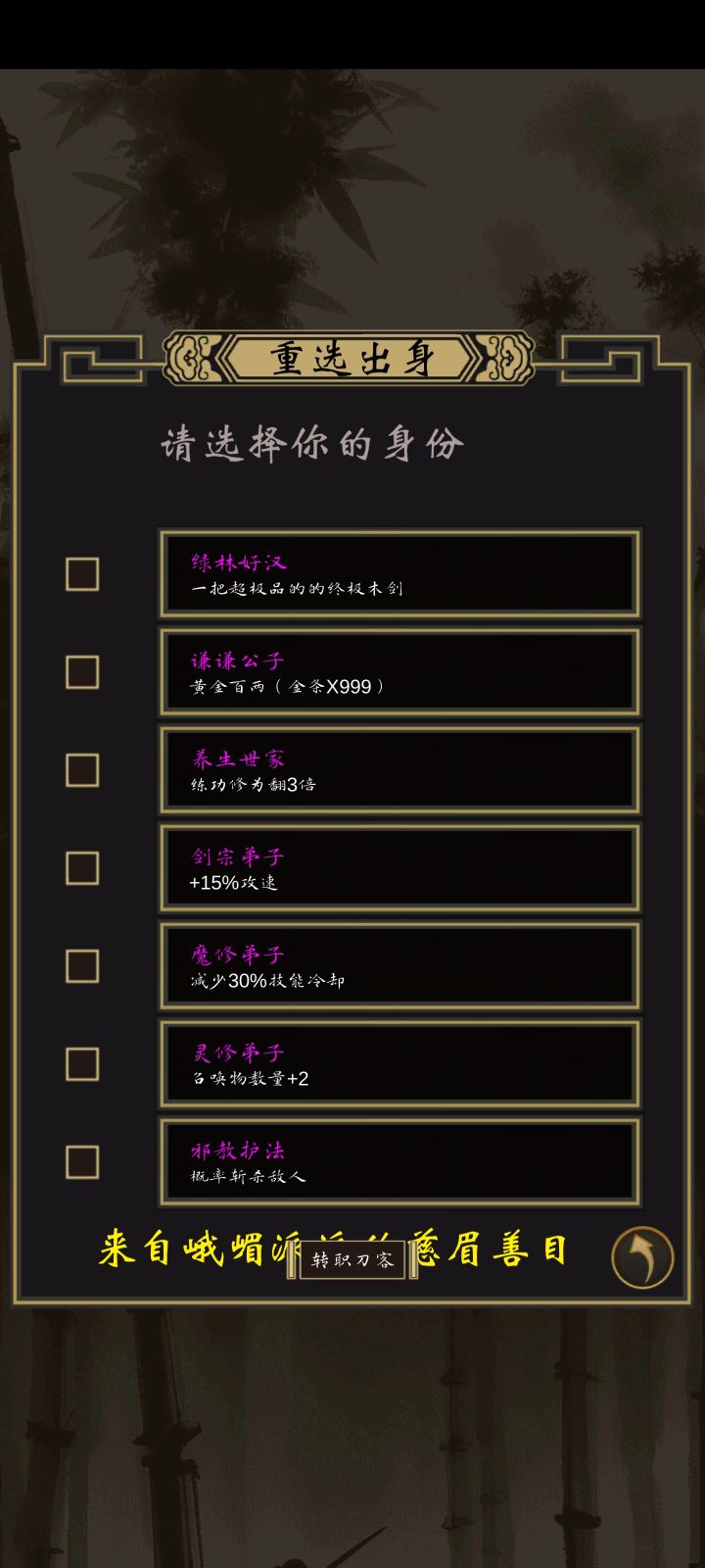 本攻略适合白嫖、微氪玩家玩本游戏须配云手机挂机出身:第一次选出身第一项可随便选第二项选古墓派会送一本53级的技能书最后一项选谦谦公子送金条999个,然后在角色处免费重选一次,这一次选择得慎重选错了将花8000,第一项可以选尖嘴猴腮攻速加30%,(前期升级相对较快,但练技能特别慢)选慈眉善目技能释放加50%(前期升级相对较慢,但练技能快)第二项选峨嵋,攻击距离远还溅射一个目标,升级得到经验基本上