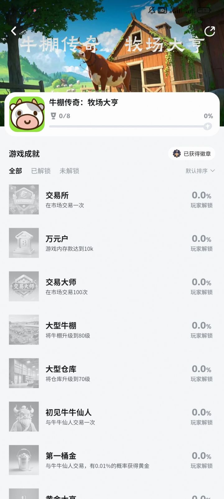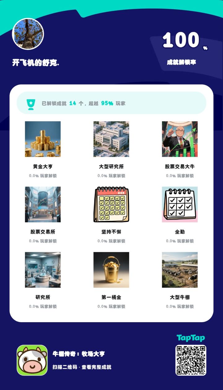 1.0.6版本卡成就的,请更新版本后在玩家设置里删除本地成就(不会影响TapTap的进度)#牛棚传奇牧场大亨