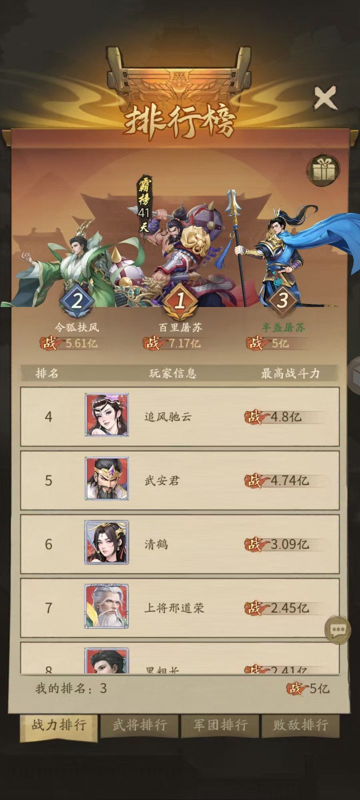 终于在42天之后退游并且准备把之前的经验总结一下,简单的写一个萌新攻略,也是之前答应过游戏好友的,虽然也退的差不多了,话不多说,从氪金开始讲起:一、氪金选择1、武将称号 🌈 这款游戏值得氪金的就是武将称号,也就是你的武将在五星的时候跳出来的328礼包,一个称号武将买一次就可以,称号是这个游戏最拉开差距的东西,是武将机制的加强2、神兽与红颜🌈这里特指无法通过游戏内容获取的,也就是金色红颜(琉璃