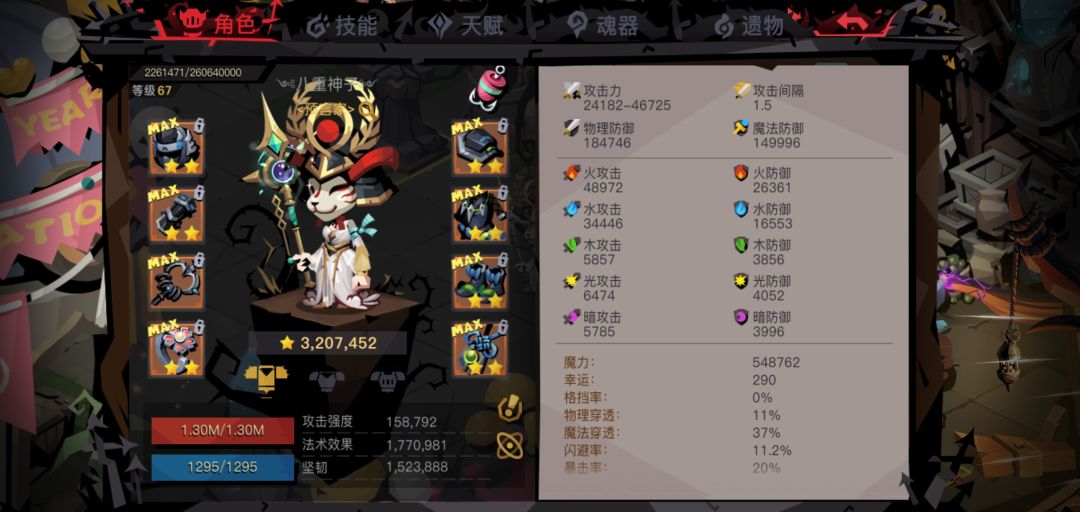神子今天来水贴了,不得不是星卡的表现还是很好的,0氪法师67级就能达到这样的属性,不过,老哥说牛郎是虚空图过图标配了,让我尽量白嫖到一个牛()老哥给了我两个属性过精七,前一个属性,老哥说只有运气好一点,不碰到心灵狂热就能过,后一个属性,是碾压精七,稳过的,还有精七要打两遍过的,才能解锁炼狱,以下是属性图(我是云玩家,啦啦啦)(哦,对了,老哥说最后打boos时最后留好安定和净化) 第一层,黑潮急行军
