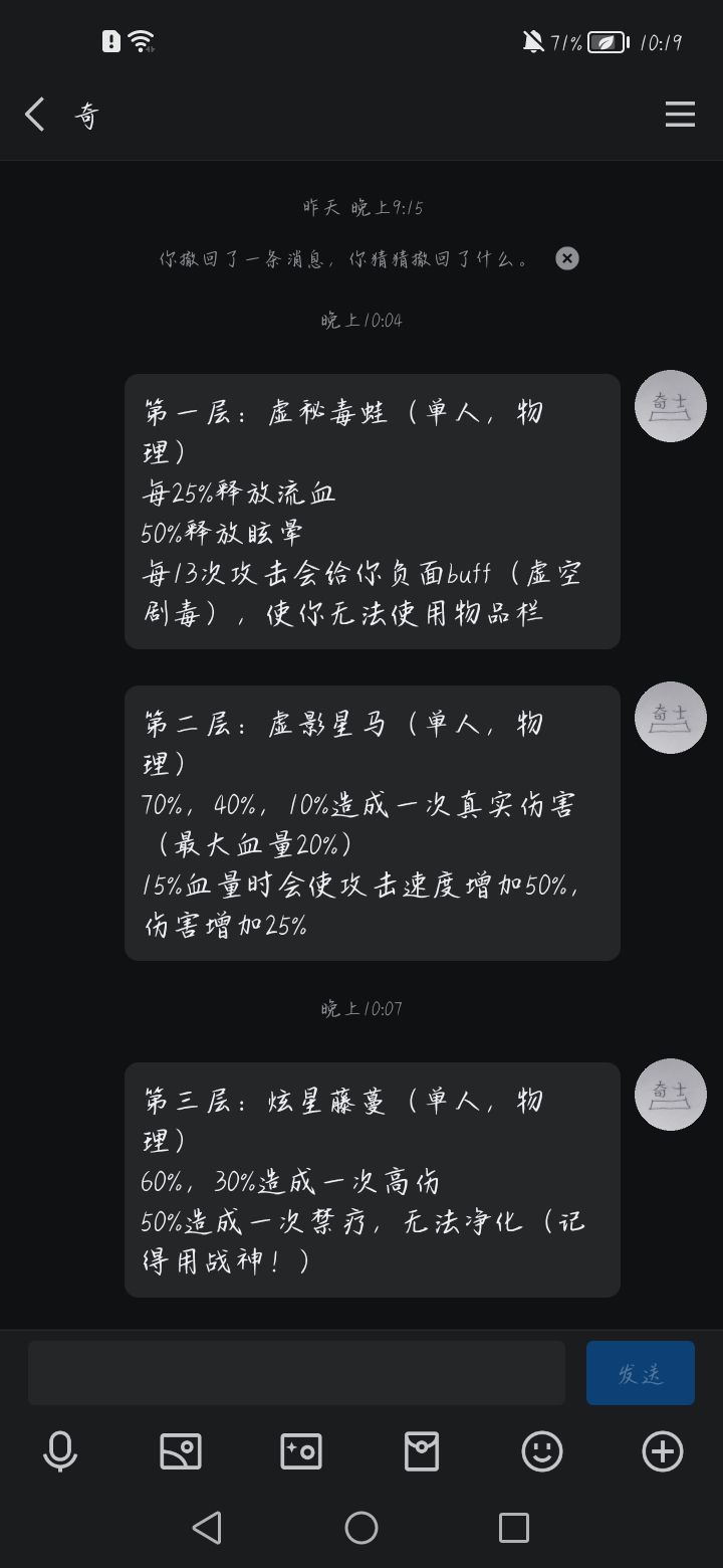 吃了两条增伤减伤暗金鱼,五层盾起手,灌注水人,难点十层守门,遇到锋锐重开,灌注盾起手,守门50血开始丢安定,水滴baff一定要记得解,自身血量快半血可以丢魂器,防止沉默开不了盾被秒,魂器结束基本守门20-25血左右,有盾开盾,灌注水人回血,解水滴baff基本就很稳,BOSS没有高伤,就是同生共死,开瘦猴打到残血再打胖猴,打完胖猴之后立马把瘦猴打死就行[表情_吃瓜]