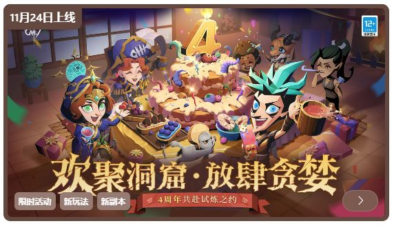 冒险者大人们好呀~ 《贪婪洞窟2》四周年庆版本活动已经陆续上线啦! 阿哇会持续在本帖收录更新,方便各位一次性打卡~ 冒险者们记得关注活动时间按时参与哟! 1、(已发奖)【福利第一弹】《贪婪洞窟2》4周年版更落地页已上线,预约即有奖! 活动时间:2022年11月17日~11月24日 参与方式:点击「预约新版本」即可参与,版本上线后48小时内在TapTap个人消息通知查收礼包码,包含:水晶*100、探