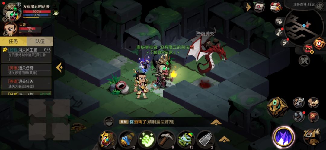 今天下午抱着试试看的心态去打了一把元素普通2,因为是刚回坑没多久,一直在追等级,所以各方面都跟不上,没想到一把过了,属性不高,本人不属于操作党,这属性对我来说已经很难,所以大佬勿喷。 属性是战神加点,不过除了1,2层,其他全部用的吞噬,贼好用!boss也是吞吞吞。这版本吞噬法挺香的。boss负面给的频率很高,打完boss用了12个净化