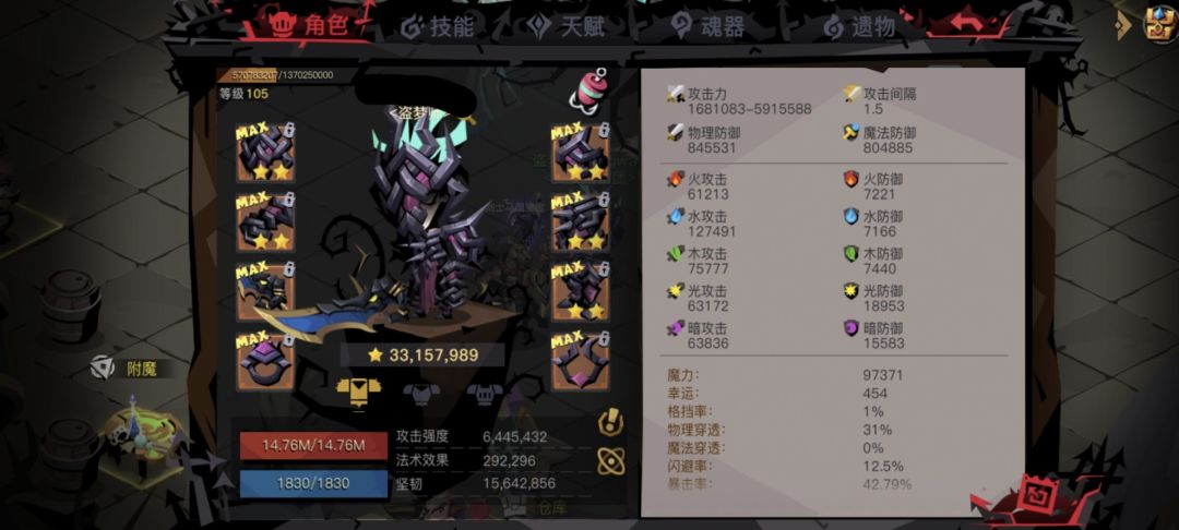 想起来做这个的时候已经过了很久了,有些截图已经删了,所以只有找到了部分过关图。 p1精十,p2普十一,p3精十一,p4普十二,p5精十二,p6普十三(天空一) 因为面板比较极限,所以都是全清,拿了很多宝石提升面板;过图又是低等级,所以才会去刷套装。所以,过图建议就是:穿当前图暗金,有条件刷套装;小怪全清拿宝石,优先拿破领域、三种减伤,可叠加的生命、攻击、元素减伤,最好有暴击回蓝