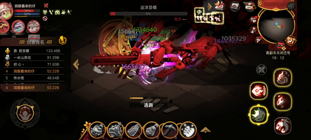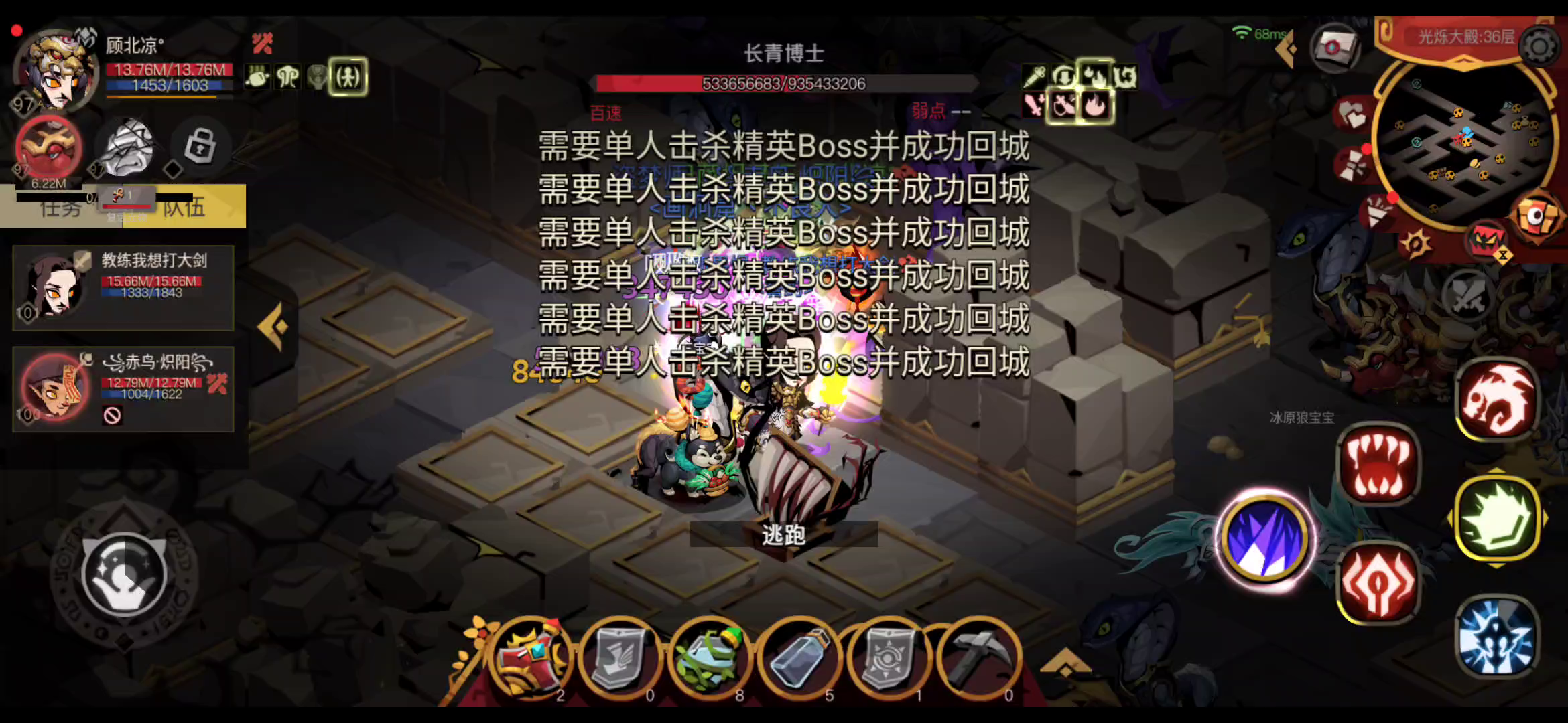 看看组队这回血,这伤害,20血回到36%,再打两分钟回满了 我想问问策划,没有一套105怎么打死这个boss 解散后单刷第二套技能没放出来就死了