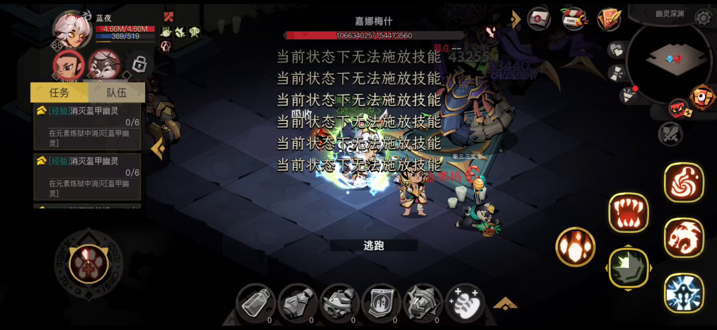 打前面两个还正常,最后这个直接我只能用盾和灌注,要不是宠物的技能还能用早死翘翘了