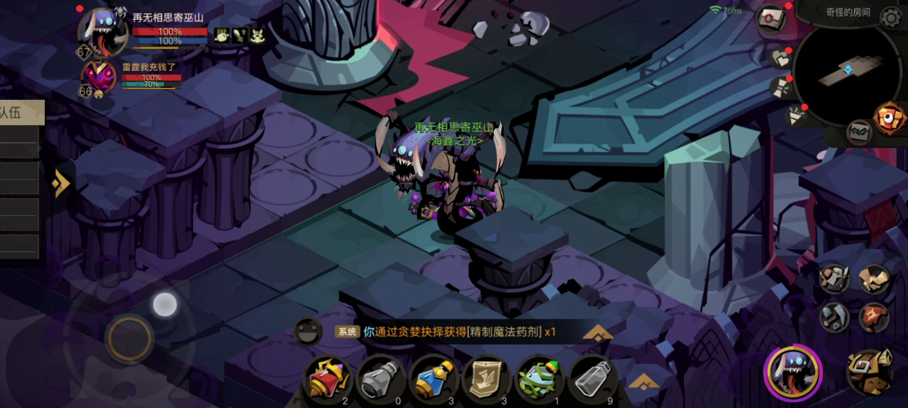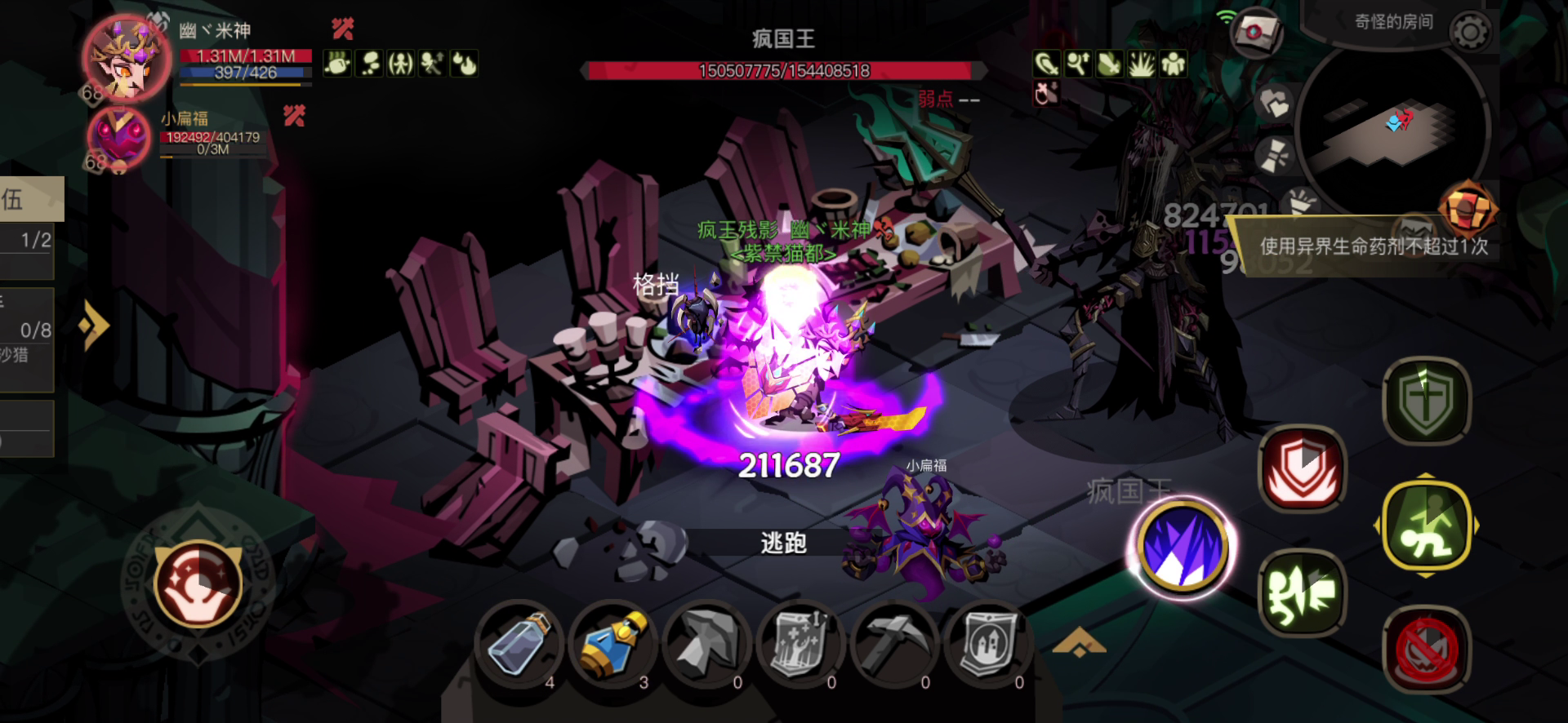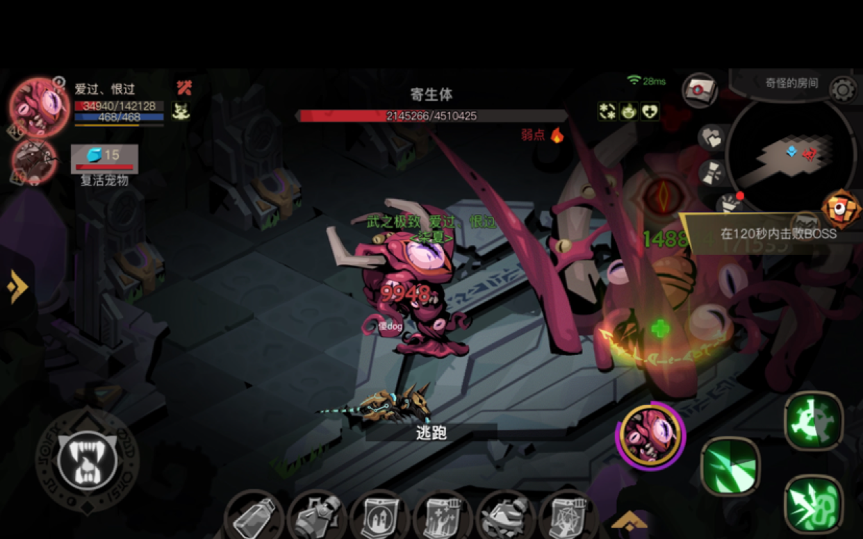 自带猩红凝视;虚弱必须秒解,不然会被眩晕;70%,40%,10%会放重击,固定扣75%血,提前战神或变身;没碰过心灵狂热,听说特别猛🌝