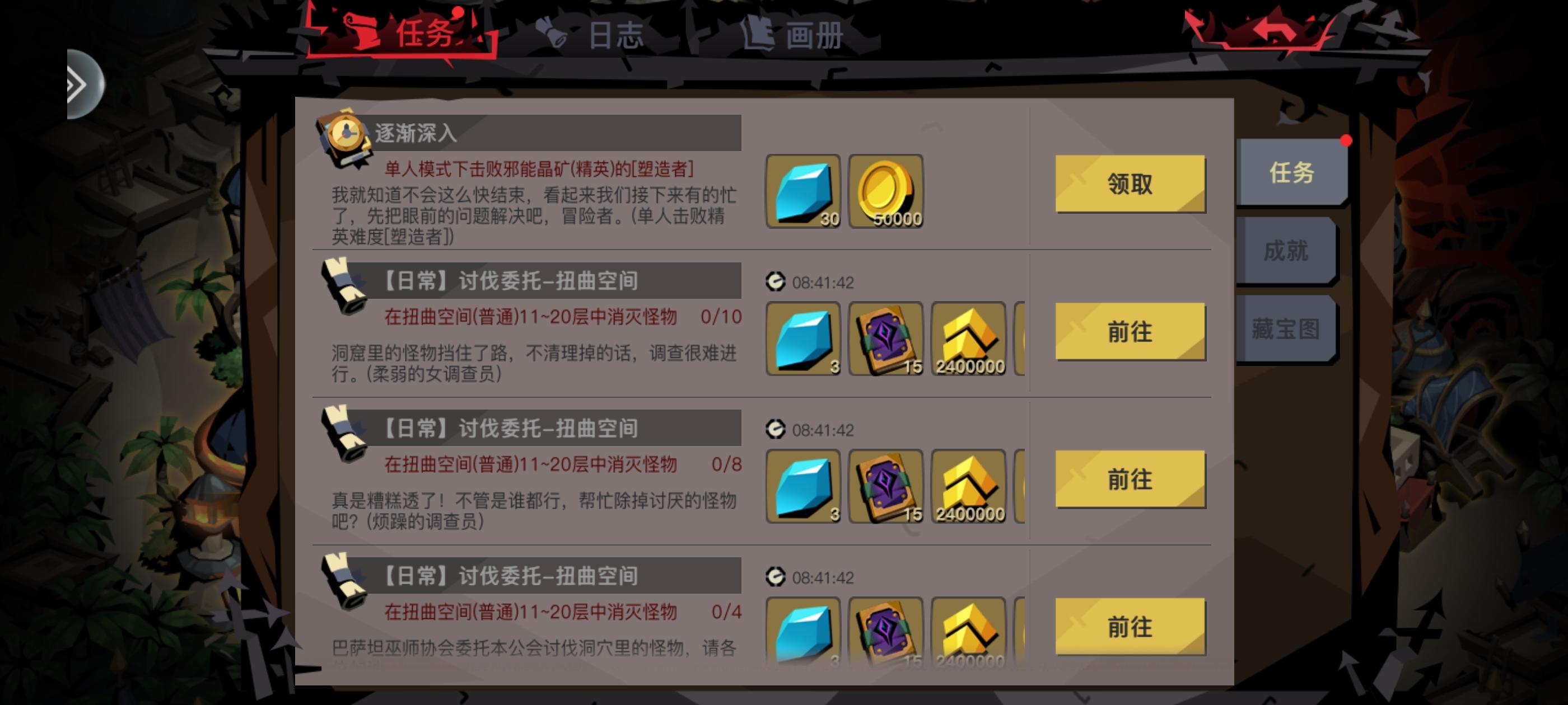 主线任务过了以后点击领取会跳转到挑战界面,不会领取奖励和继续下一个主线任务