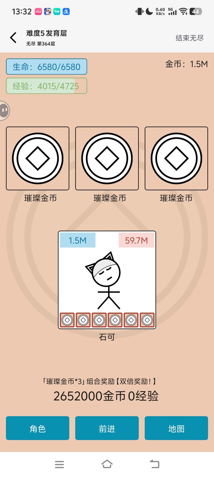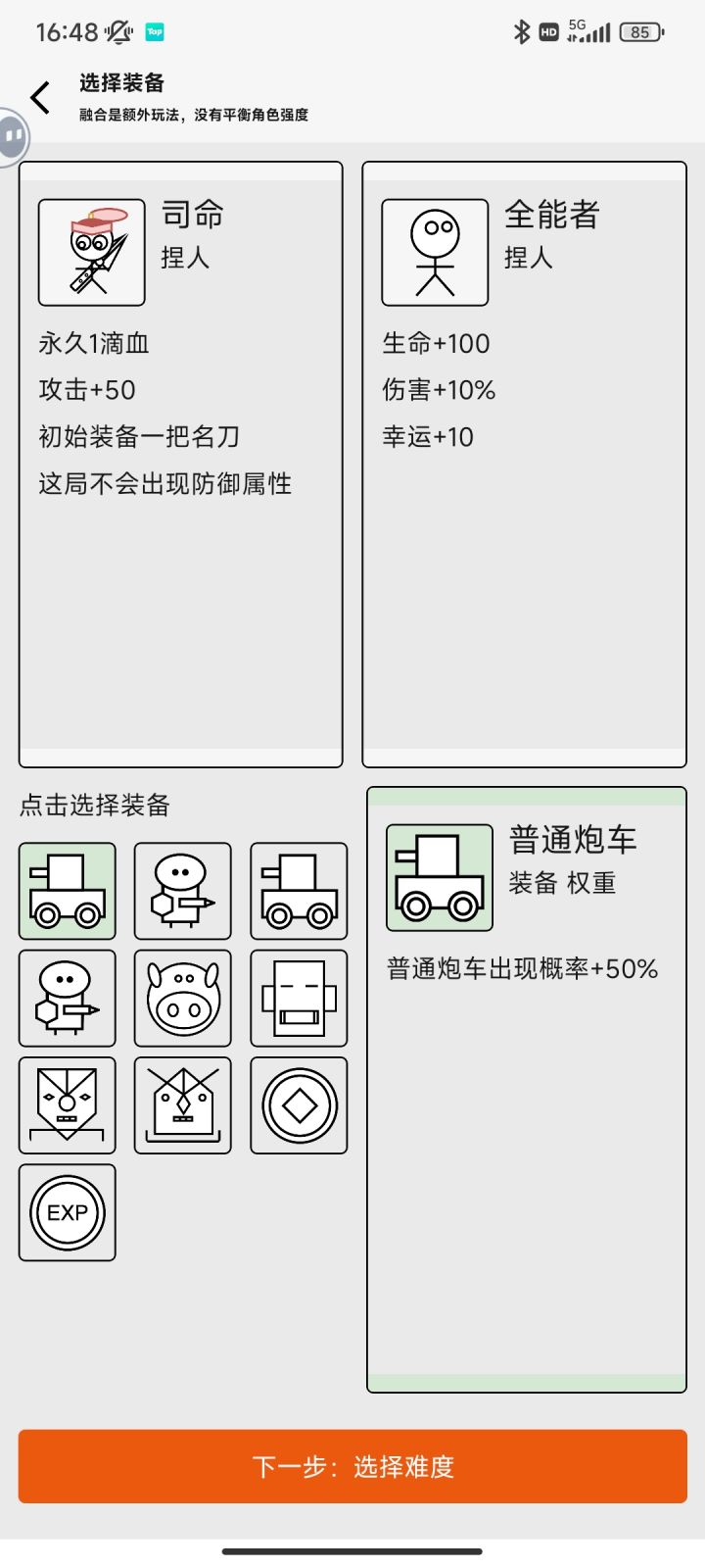 当然游戏过程中由于需要对当前即时战力提升来过关,以及延后提升更多未来战力之间进行权衡,后者如经验增长、金币增长、双倍爆率、和最重要的运气。双倍爆率考虑到了风险补偿,这一点很不错。但即便我使用的策略只是接近最优解的次优解,大部分角色10次应该都难通难度5一次。可以的话,希望提升一下捏人的数值,最好在次优解情况下3-5局能通过一次,毕竟有那么多捏人,一个捏人通了难度5也不至于通关退坑,而是继续挑战其他角色难度5的可能更大一些,而且在玩家偏娱乐性质的情况下,还不一定能找到次优解较快通过难度5。希望意见有可参考之处,望越做越好😊