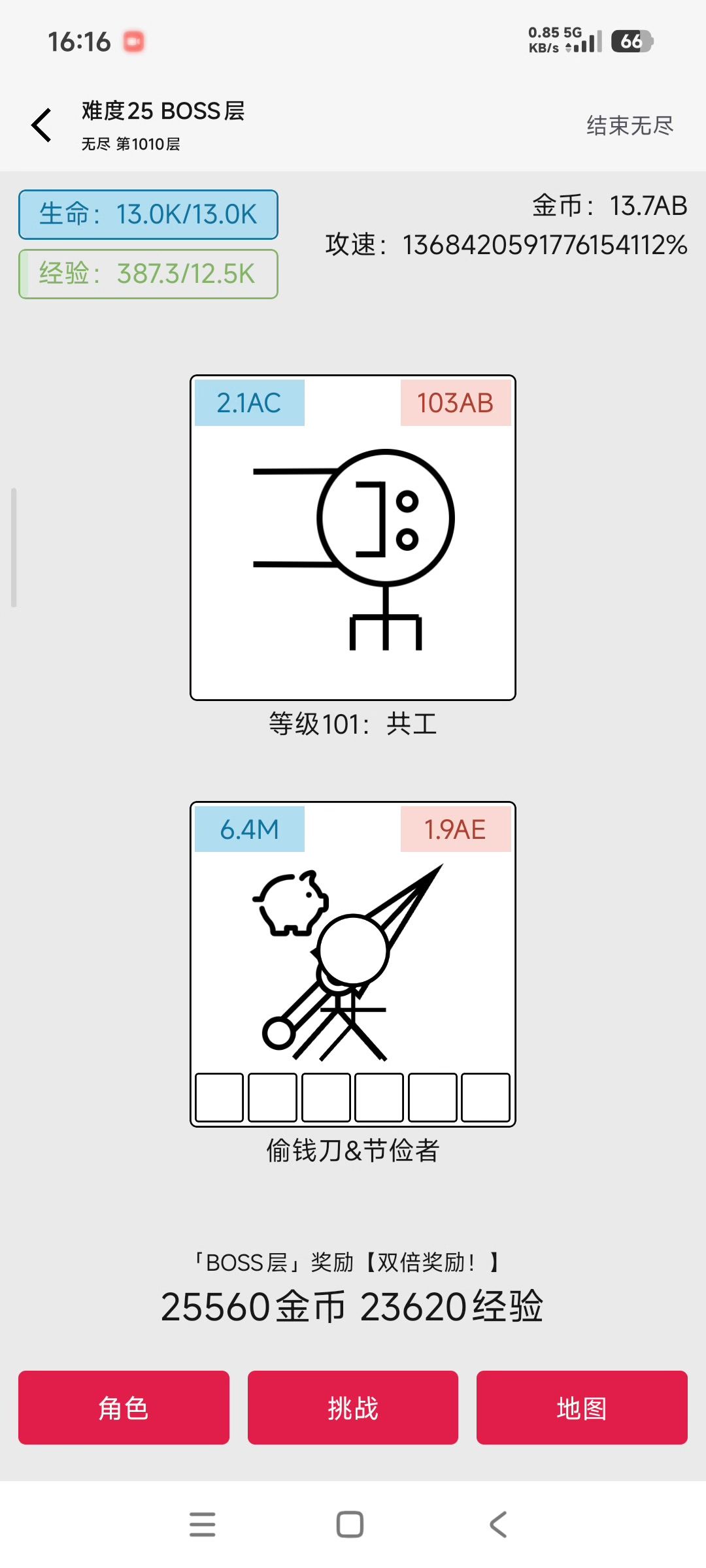 我玩的是作者提供的网盘版本,选择的是融合模式富翁开局万亿元资产,节俭者每10元获得1%伤害加成,开局即有10亿倍增伤,奠定了无脑过25的基础离开商店后,总资产+20%(这个效果简直逆天,利滚利)这也代表着这个组合的增伤倍率也会指数级提升!碰到怪就是秒,可以说相当无脑游戏中除角色效果外提升战力的方式有两种:角色升级后加成4选1或者商店,先别急,虽然富翁让我们获得了用不完的金币,但我不推荐在