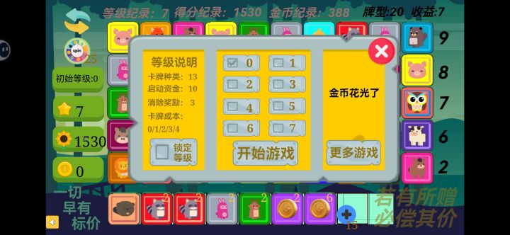 很有意思的小游戏,界面并不精美,但是机制很有趣,开始看起来可以随便浪,但是殊不知,你初始的积累正是决定了最后你能扛多久、走多远。