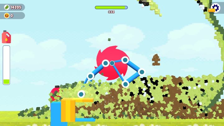 本作拥有相当不错的物理效果,当齿轮与建筑物接触时会感觉到明显的阻力,随后建筑物会散落为小方块向下落去。
