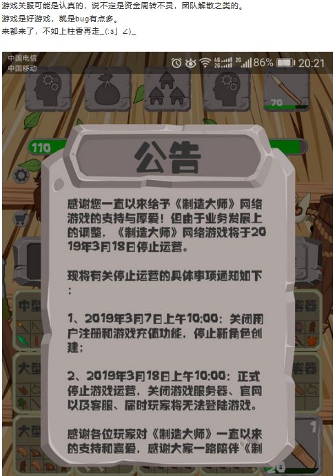 致玩家们的一封信,游戏仍在继续研发,新版本即将上线——《制造大师》研发团队