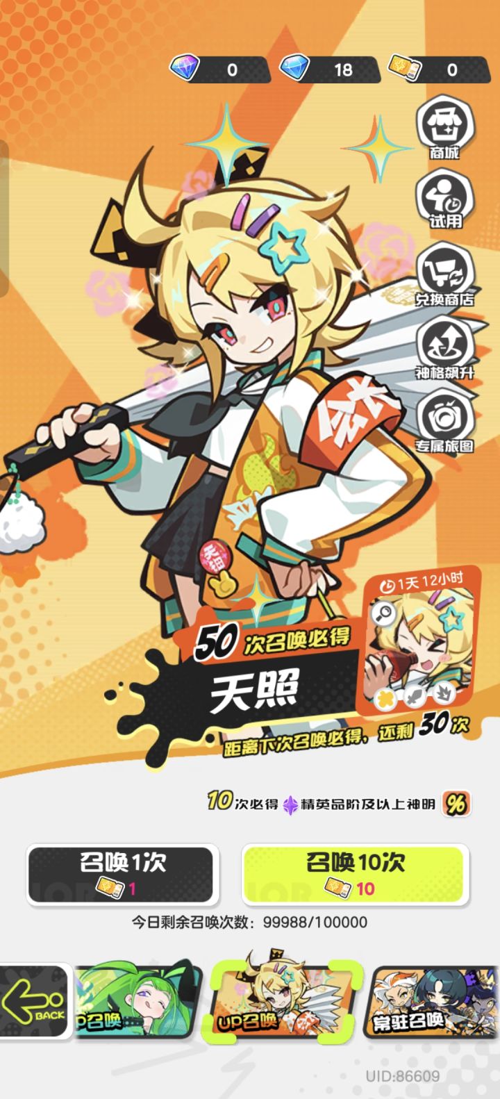 这游戏第一天是最忙的,第一天不干活后面第二第三天基本就跟不上大部队,所以我们要在第一天做到资源最大化角色抽取方面牢人言:疯狂抽天照,拿着天照砍砍砍就过关了常驻池自选定紫色角色的话,出金可能会占位,出四个紫角碎片给你,所以不要想着自选四个紫一个金以为可以只出这个金常驻卡池我个人这样选(红圈必选)波塞冬,丹塔莉不是必要的选择,可以根据个人喜好切换角色狄安娜只需要一只本体,拿到以后也可以换人