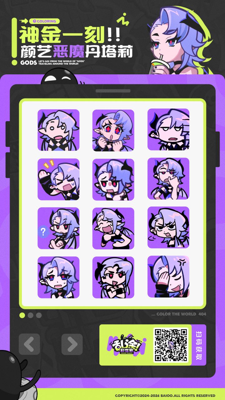泥嚎人!伙伴们呼声极高的表情包超级上新——!《乱涂!彩世界》表情包第1弹「颜艺恶魔丹塔莉」现已上线!一起前往微信平台查收~▉微信表情包获取方式:★复制链接:,在微信平台中打开,即可跳转相应表情包商店页面★微信扫描图片中的二维码,即可跳转免费获取#乱涂彩世界 #乱涂彩世界喷溅测试