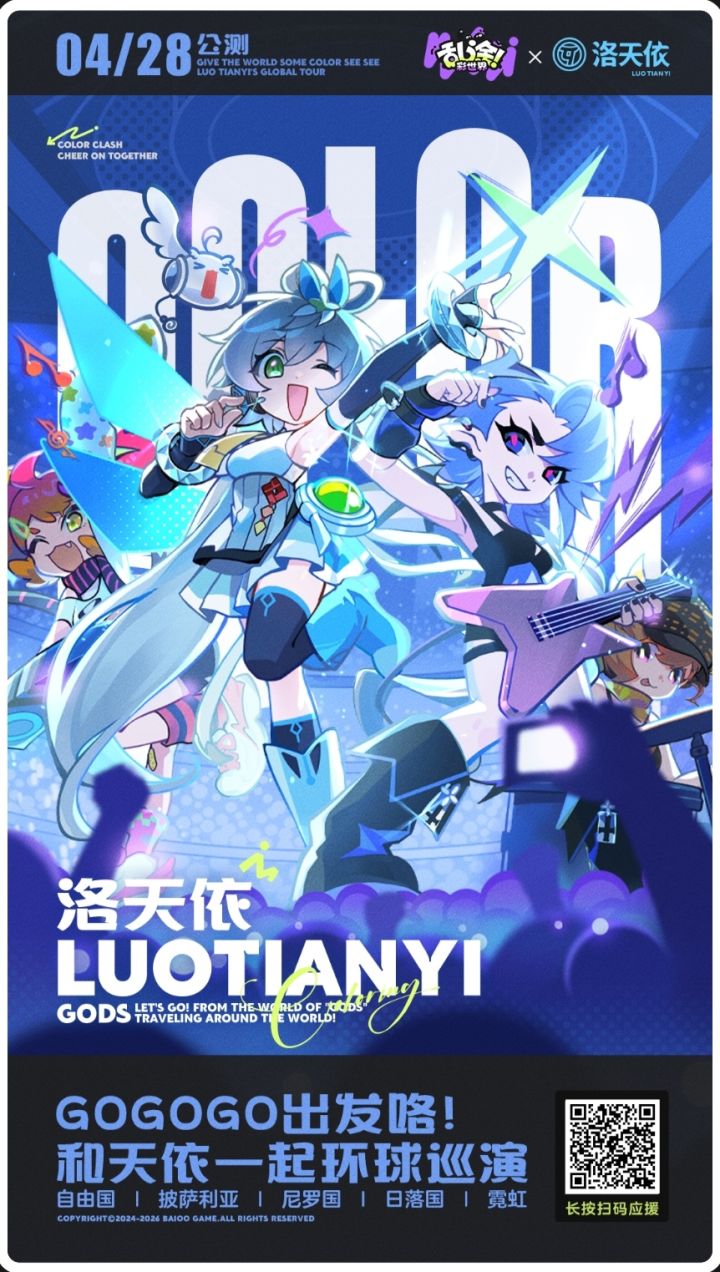 噔噔噔噔!小乐色温馨提醒:洛天依的环球巡染应援活动将于28日0:00结束(明日就是最后一天啦~)天依马上就要来到《乱涂!彩世界》进行环球巡染啦!没有伙伴的荧光棒怎么能行?为天依应援即可获得10张联动抽卡券,邀请好友应援最高再送14抽,伙伴们千万别错过~点击立即前往应援:——神明娘爆涂乱射副副副游——《乱涂!彩世界》全平台预下载将于4月27日00:00开启!▼ 听说点一下会有好运噢:#
