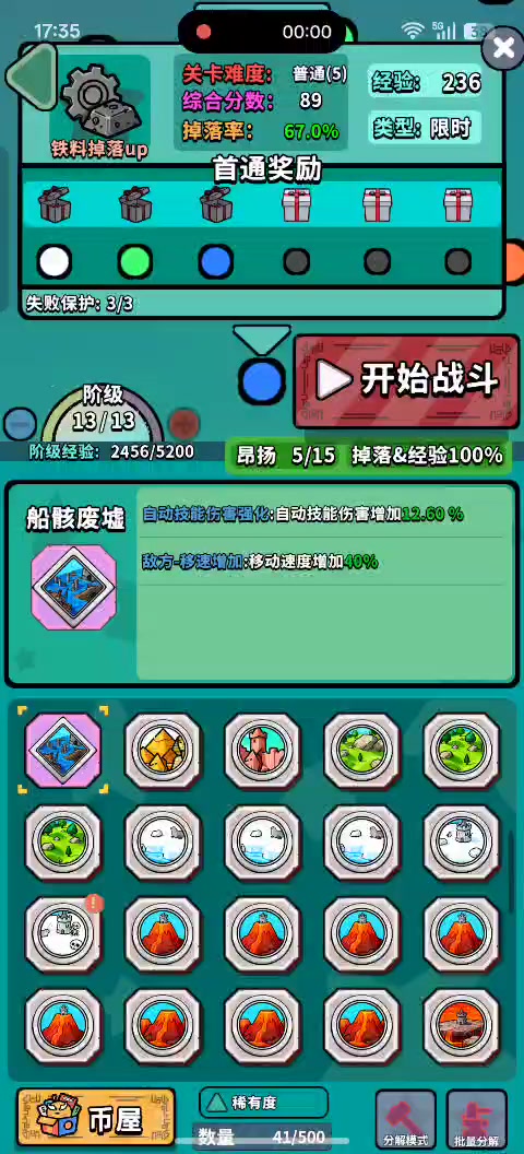 《币域》模式新手入门心得整理 1. 模式简介 · 通过挑战不同地图获取材料:铁矿、装备、宠物、突破石、稀有道具琥珀等。 · 每次战斗消耗门票,并获得经验,经验满后升阶(阶数越高,爆率提升)。 · 阶数可手动调节(±号),打不过时可降阶降低难度。 2. 门票类型 · 普通门票:基础爆率。 · UP门票:提升特定道具爆率(如琥珀UP),白色品质也很有价值,建议有条件的玩家通过商店获取。 3. 每日挑战
