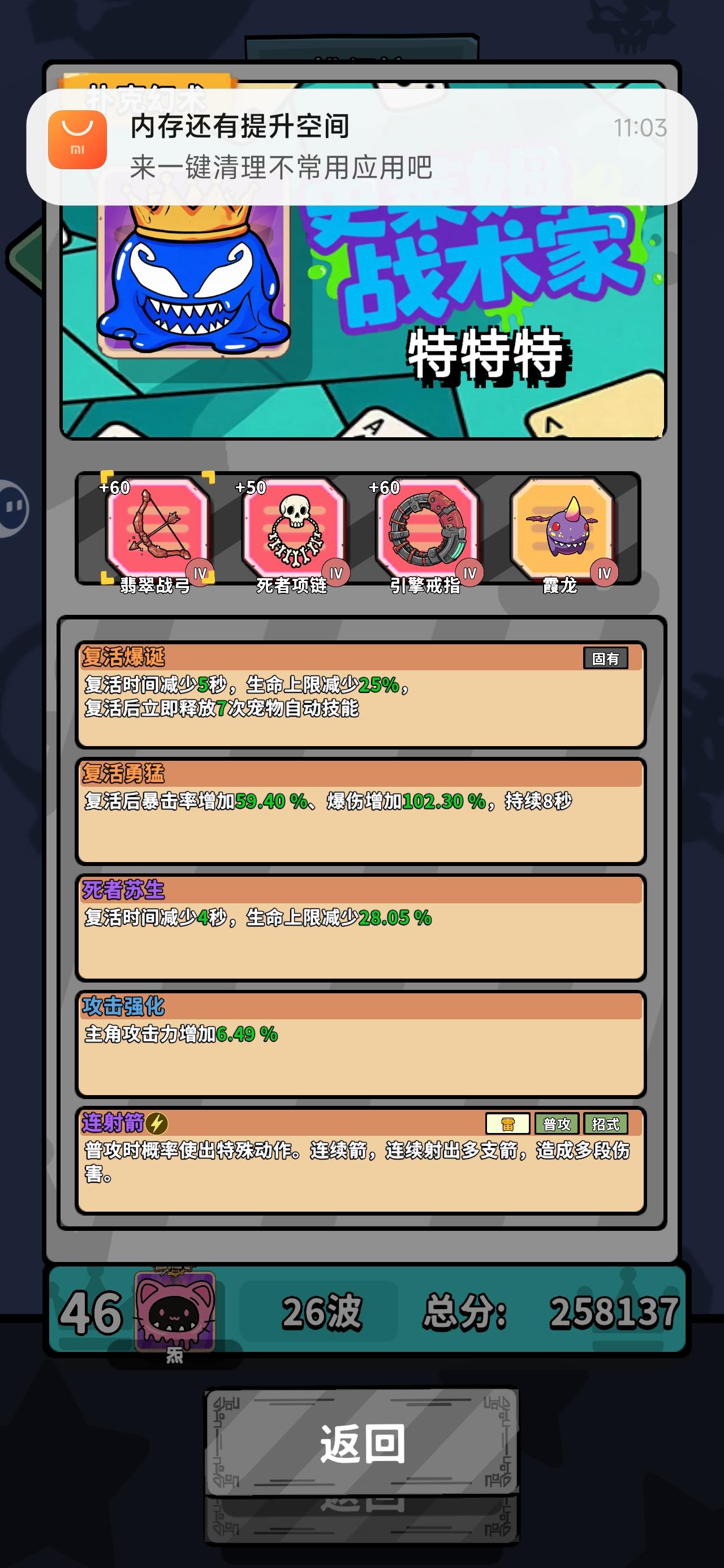 装备图片放在评论区,因资源有限装备只是半成品,次视频打的是限时地图,无尽套适合很多地图,是目前伤害比较高的体系之一,有塔的地图局内可以建光环塔,或者水塔电塔减速刺猬怪都行,兵营因为还没有宝石加成伤害不算高,个人建议用用盾兵,主要还是靠人物去打伤害