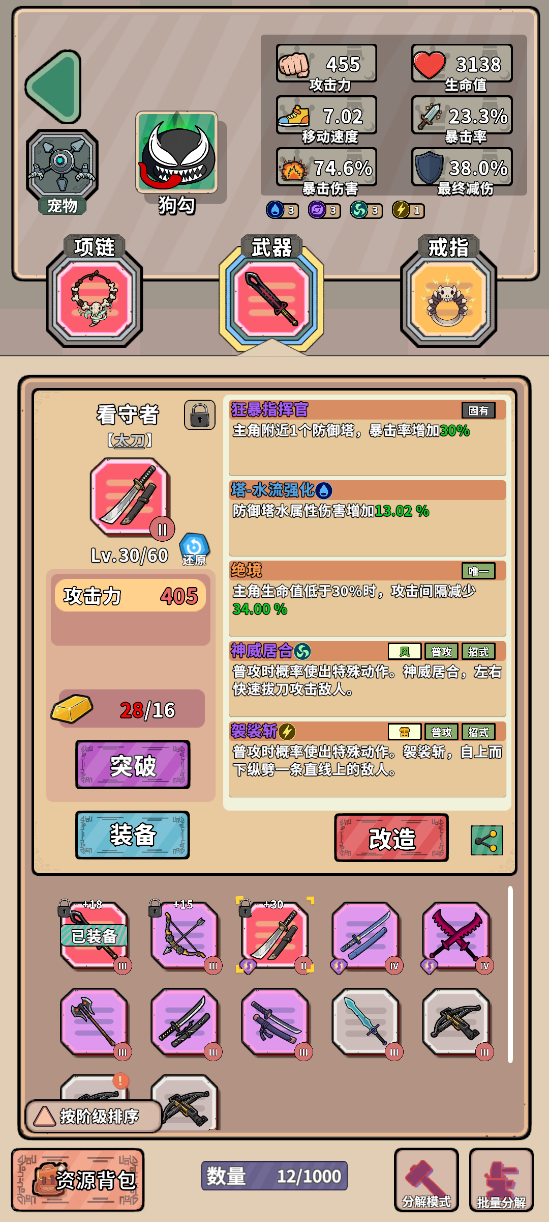 装备图片放在评论区,因资源有限装备只是半成品,次视频打的是限时地图,无尽套适合很多地图,是目前伤害比较高的体系之一,有塔的地图局内可以建光环塔,或者水塔电塔减速刺猬怪都行,兵营因为还没有宝石加成伤害不算高,个人建议用用盾兵,主要还是靠人物去打伤害
