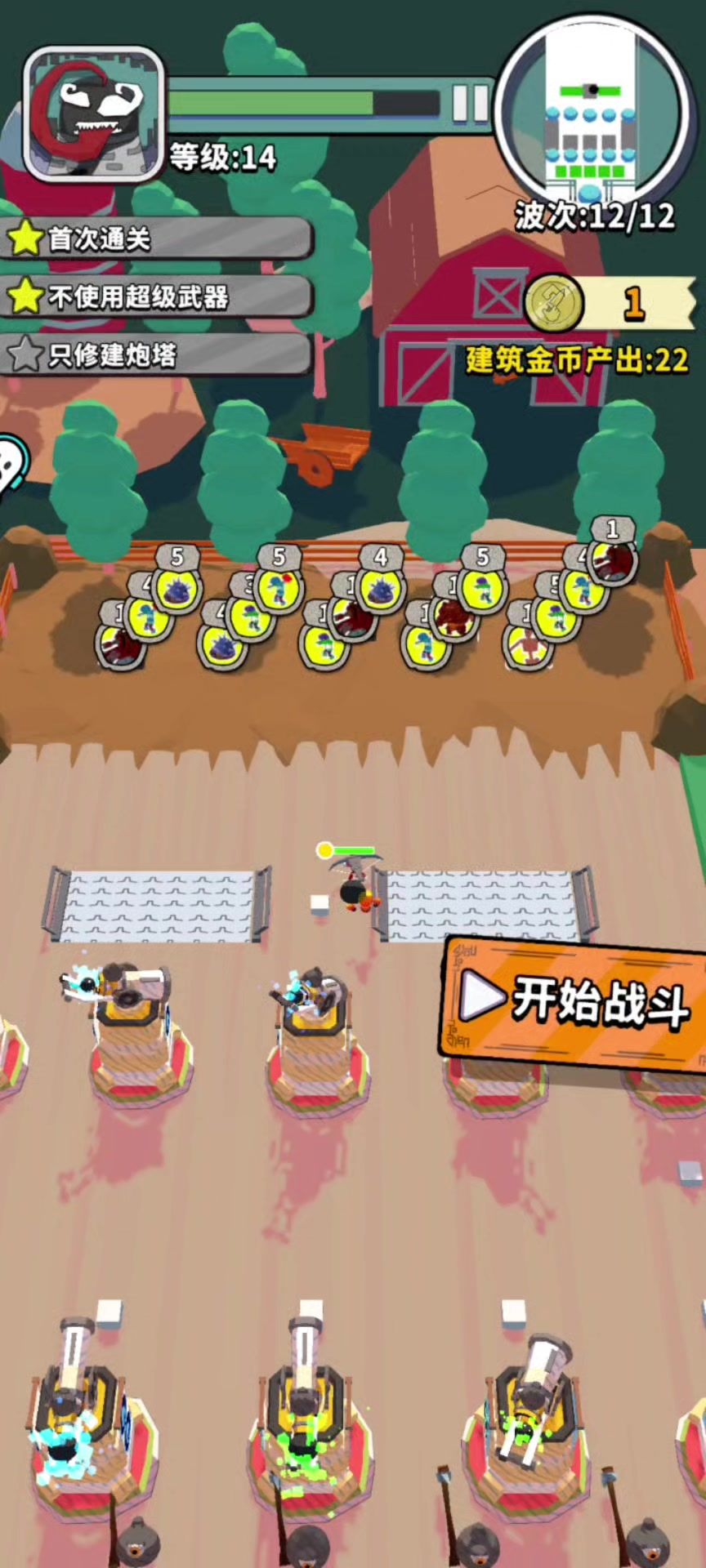 纯炮塔很有难度,先搞个两星告一段落😏#出战追击 #塔防游戏