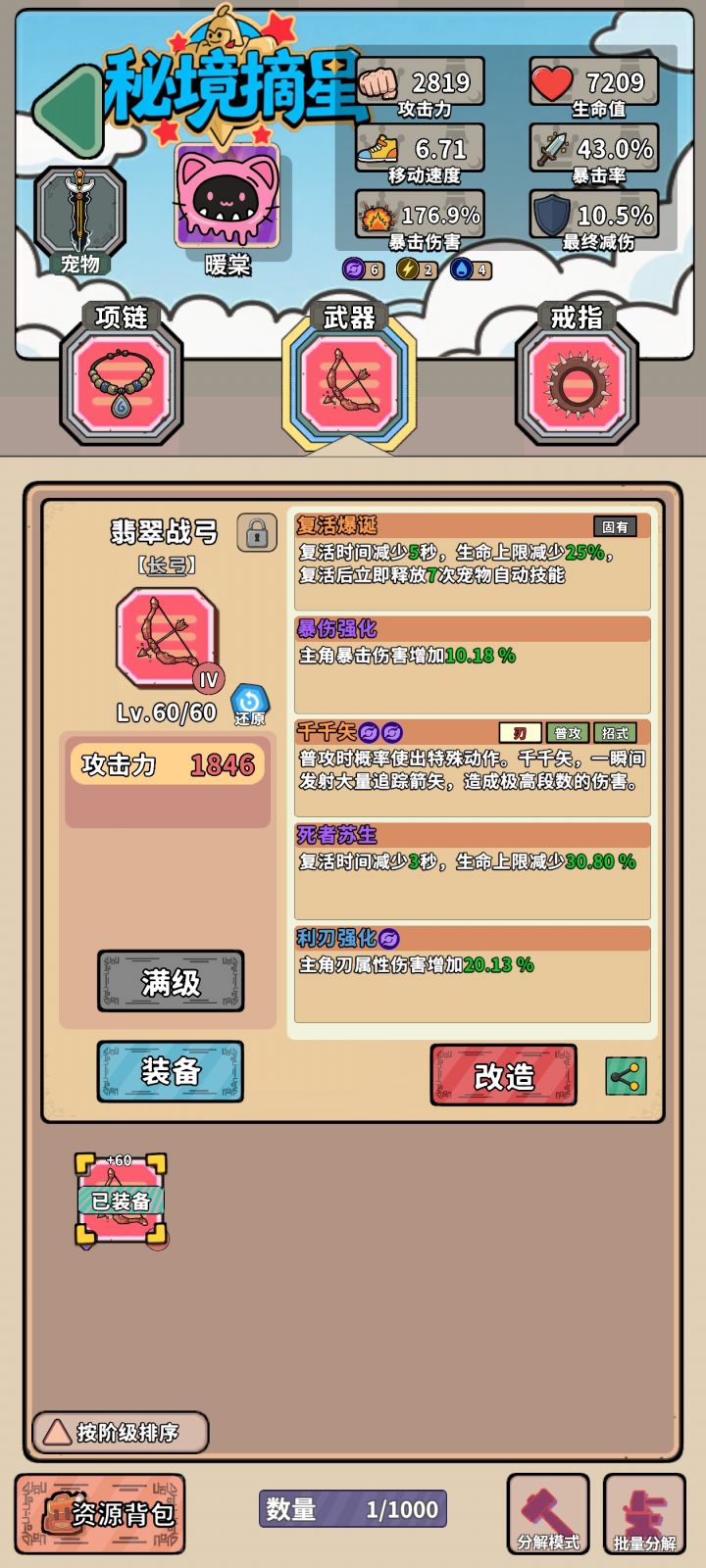 哭了,换了个弓,最低数值