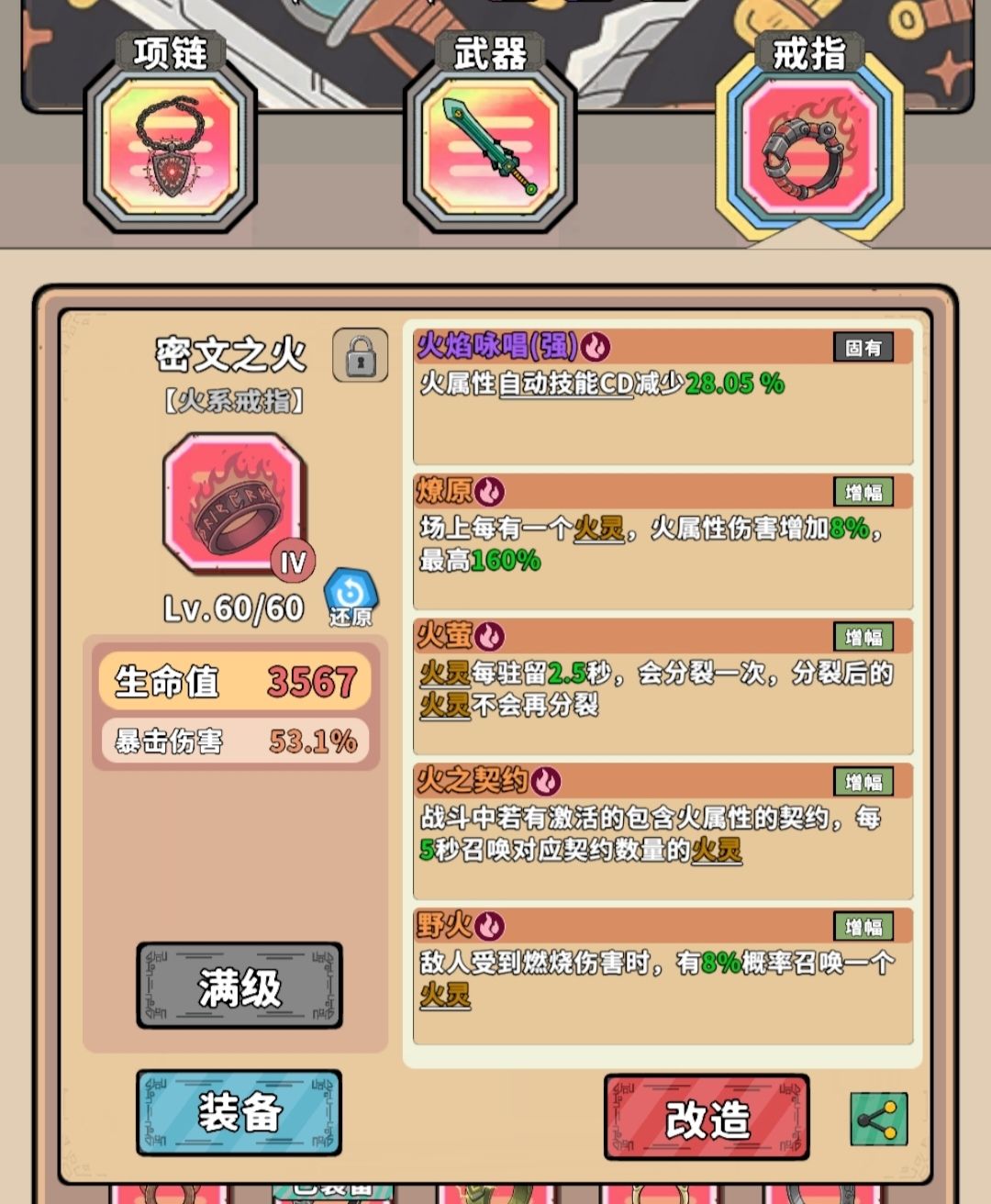 这几天一直卡在英雄塔95层,硬是过不去,换装备,换天赋,雷,水属性均过不去,时光套在有经验球的时候伤害还好,但是95层最后小怪都没了以后,拾光套的伤害完全打不动最后那几个大怪。突发奇想,试试火灵套,火灵的持续伤害或许有用,威力看视频。