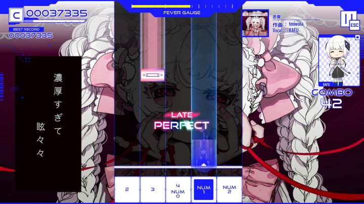 每首曲子中音符轨道都会在5键和7键中来回变换,这本来是增加整体表现的一环,但也很容易导致玩家刚刚形成的肌肉记忆乱掉,我尝试了改键、使用手柄等方式还是会有一些失误。