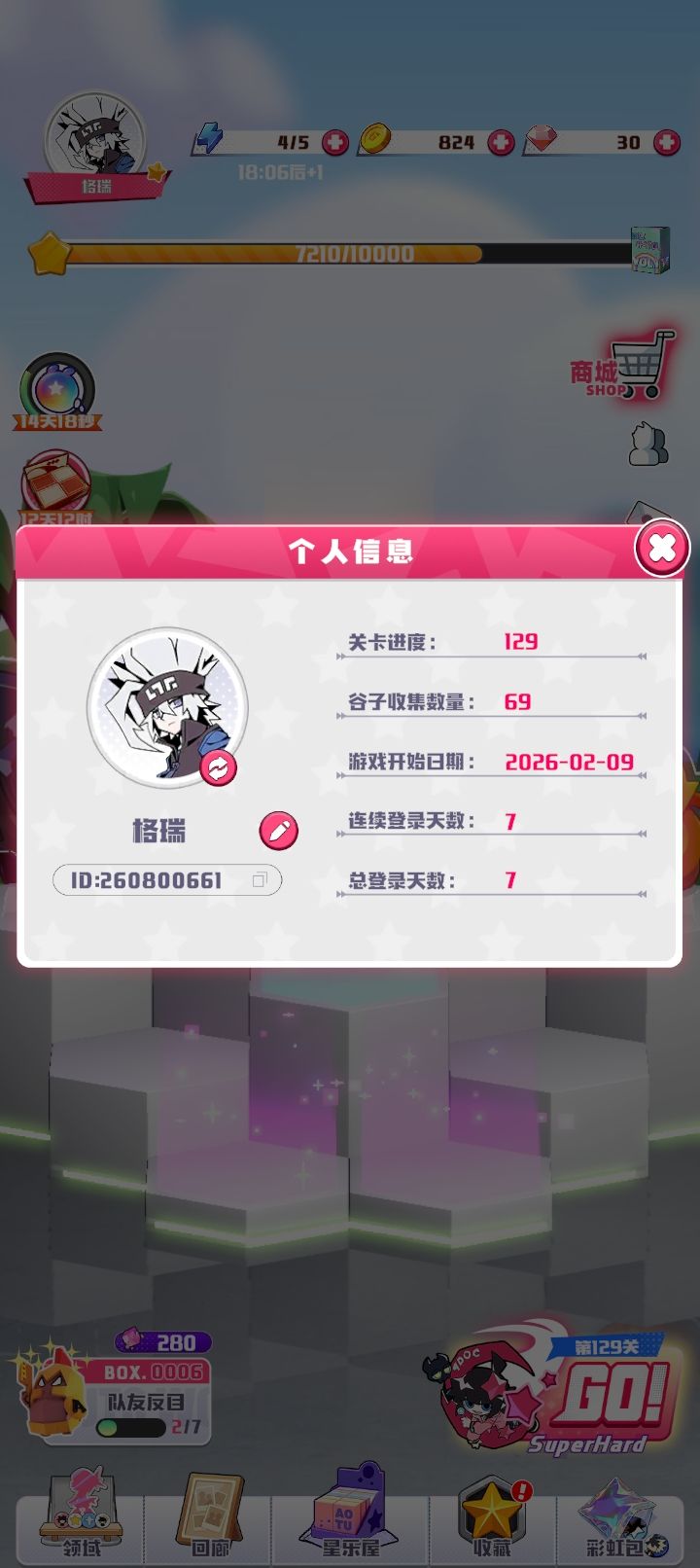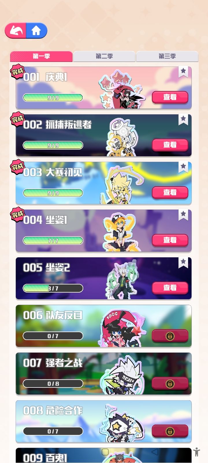 再说里面的抽卡系统,这个星乐屋(相当于up池)算是比较不错的,过个几关会给你一个,而每六抽基本是必出货的且不会重复。我现在是全抽完了还有富裕的资源。但彩虹包给的就很吝啬,一共四个档位,我玩了这么久。最高级的和次高级的仅有一个,我还没舍得抽。且不知道会出什么,按抽卡游戏来讲,算是一个大混池,什么角色都有,包括很多冷门角色。综合来说,还是星乐屋比较好,但星乐屋又是隔一段时间才会换角色。目前还没有我推,不知道下一次的星乐屋会不会有。